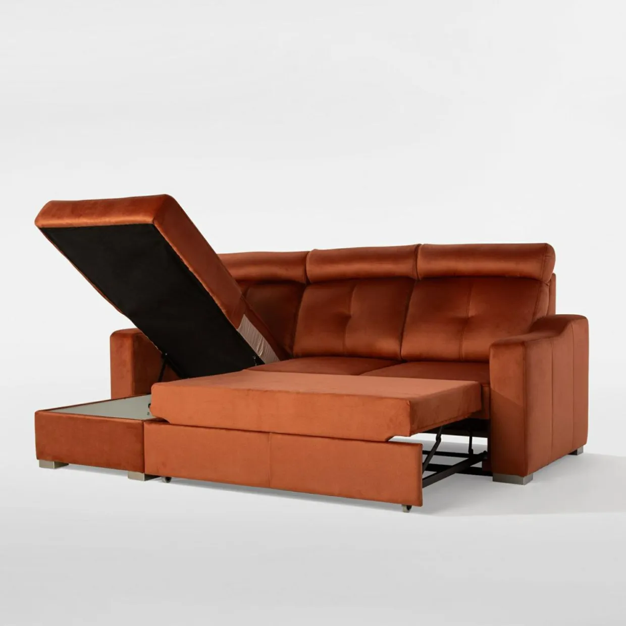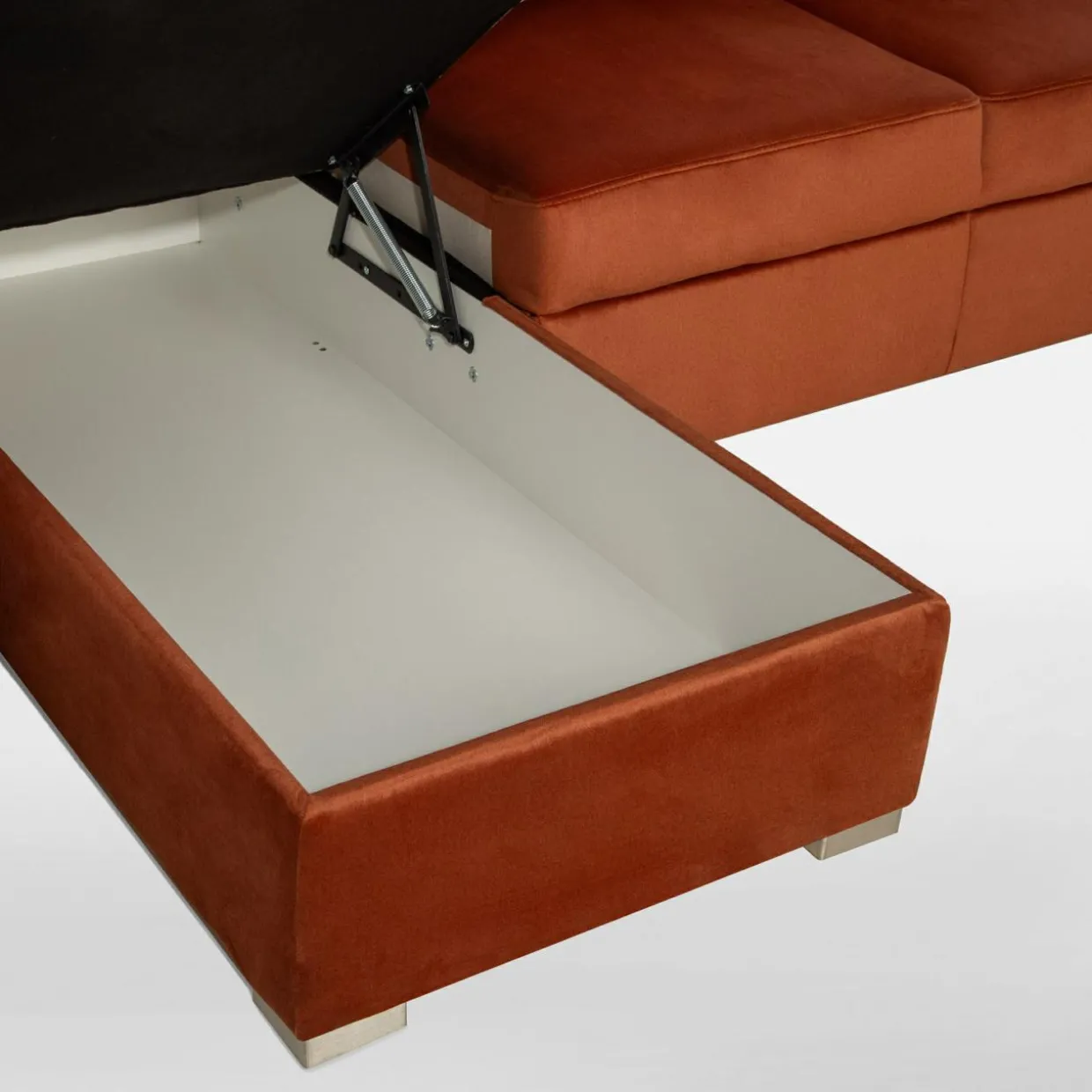 - Pojemnik w leżance pozwoli Ci wygodnie przechowywać pościel i inne domowe tekstylia. Możesz z niego korzystać, nawet jeśli narożnik będzie rozłożony.