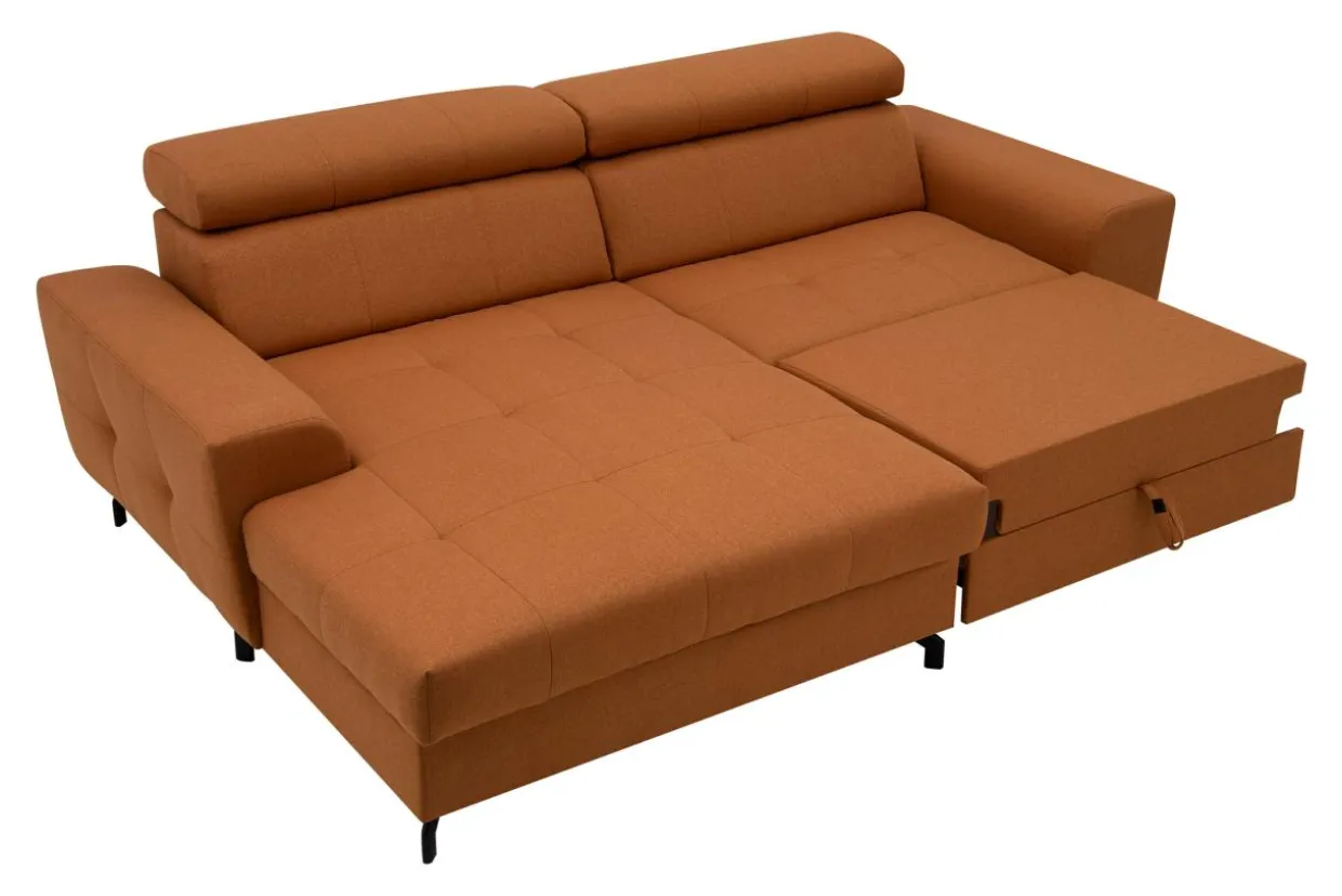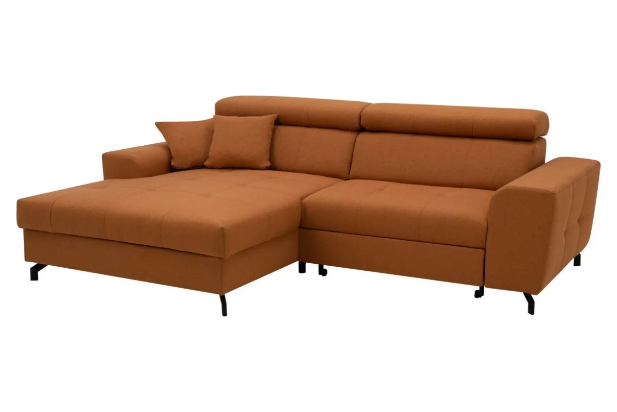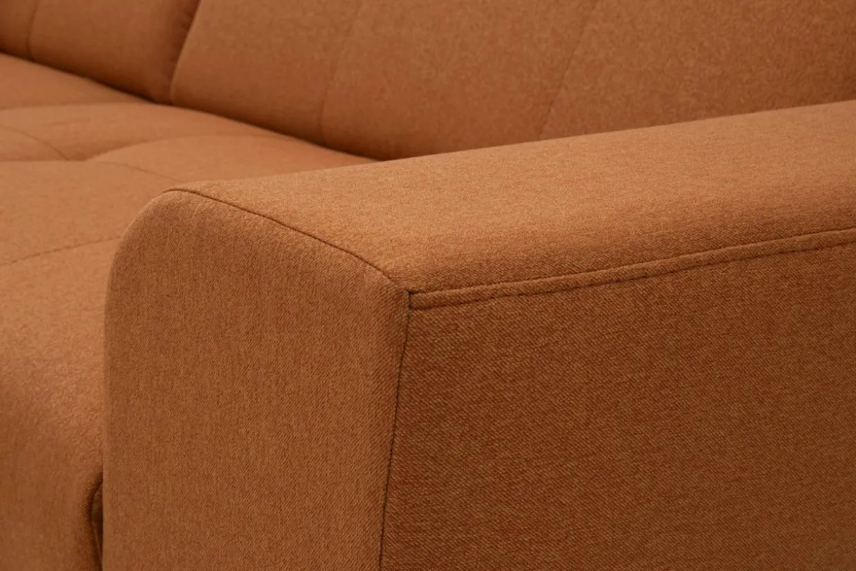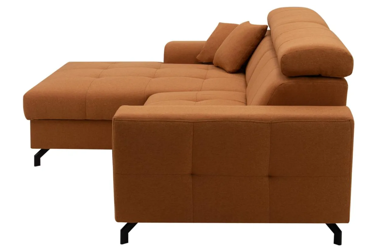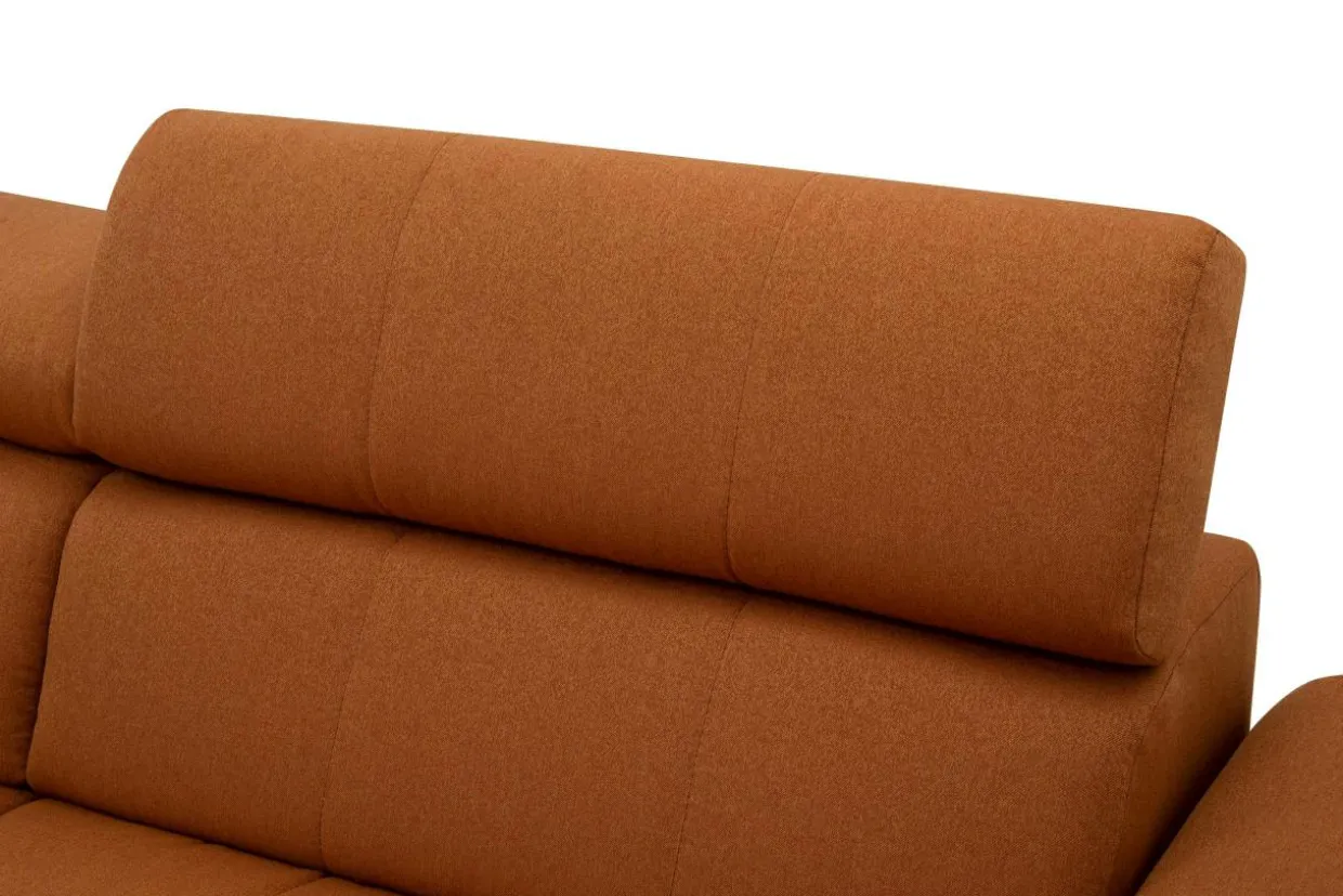 Ciepły – rudy kolor narożnika ROSSI wyróżni się na tle szarych ścian. W stonowanych pomieszczeniach z drewnianymi meblami, narożnik ROSSI stanowić będzie akcent energetyczny.