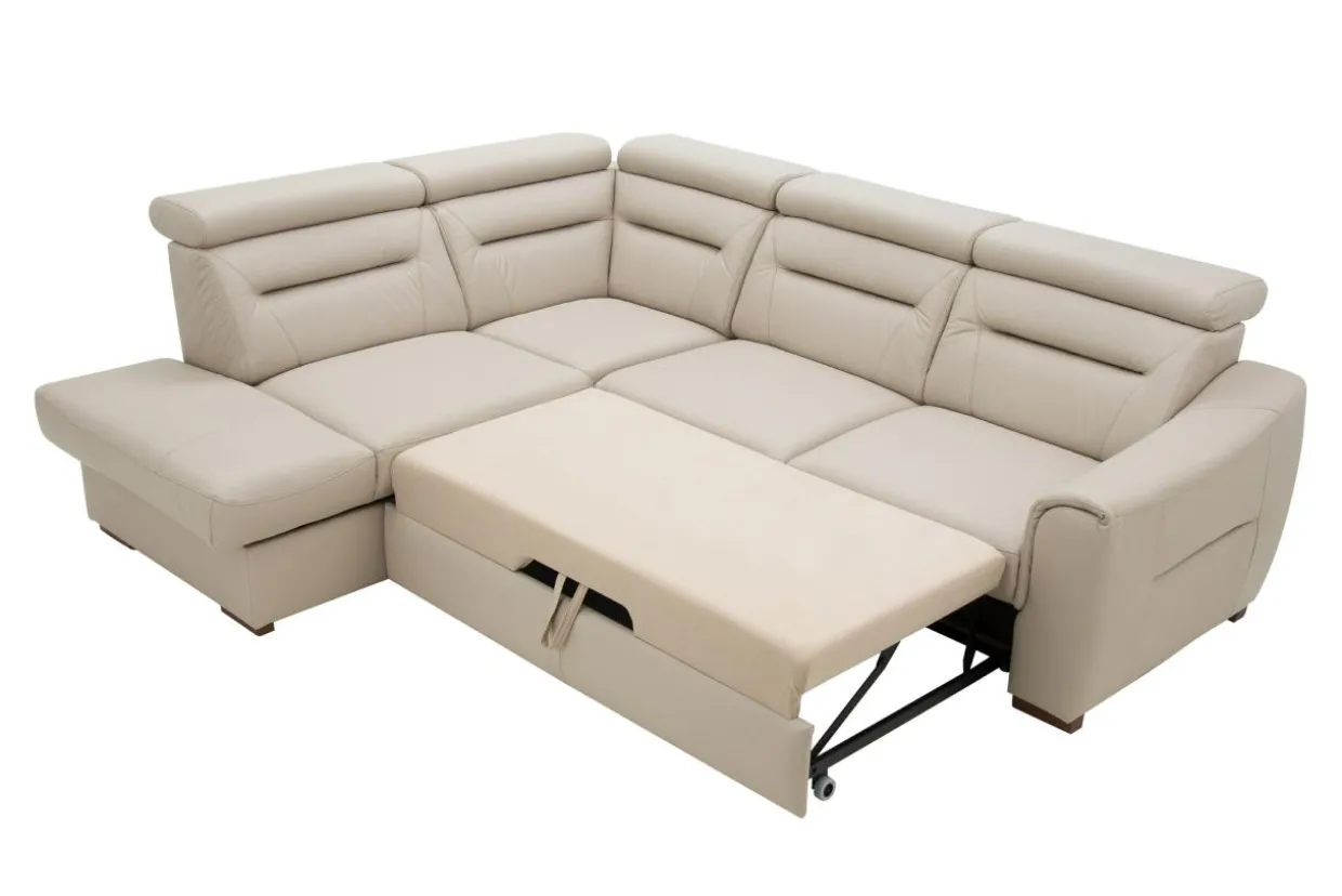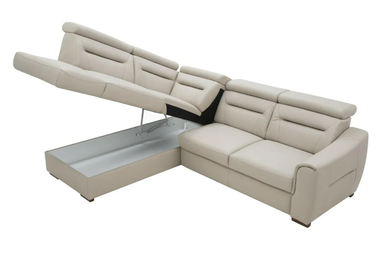 Narożnik posiada wbudowany pojemnik, który możesz wykorzystać do przechowywania pościeli, koców lub innych tekstyliów. Pojemnik znajduje się w boku bez podłokietnika.