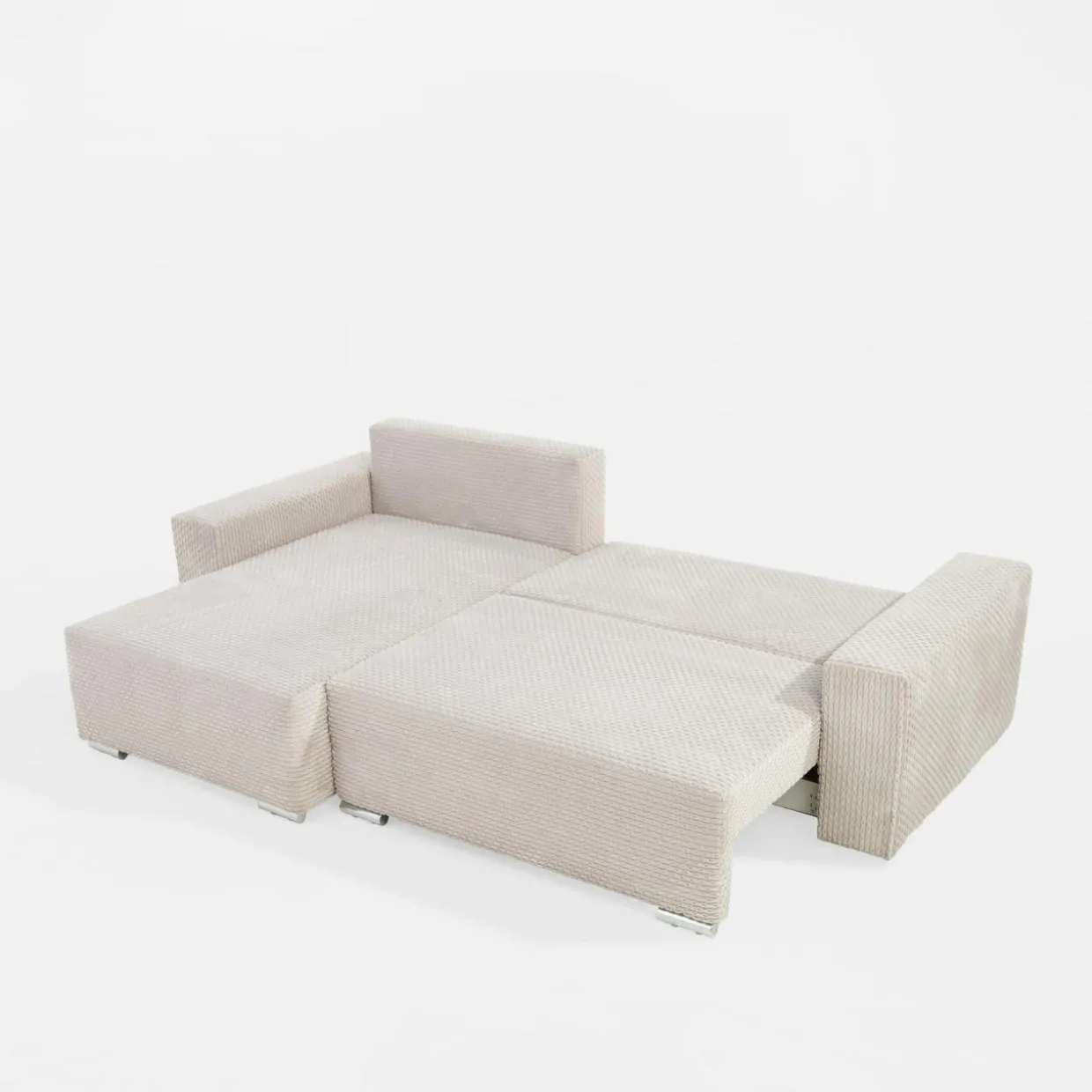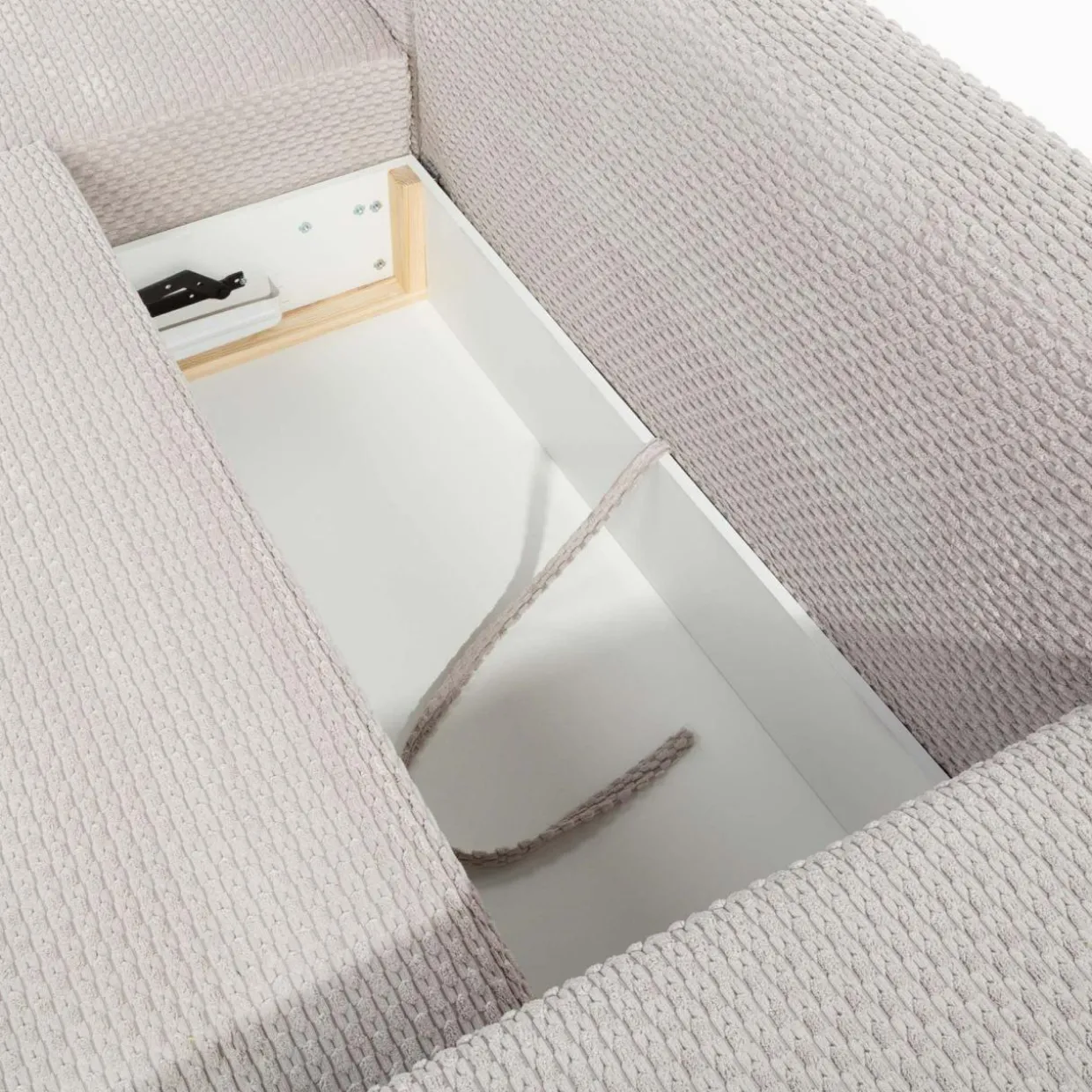 - Pojemnik pod siedziskiem da Ci dodatkową przestrzeń na pościel i inne domowe tekstylia. Dostęp do niego uzyskasz podczas rozkładania narożnika.
