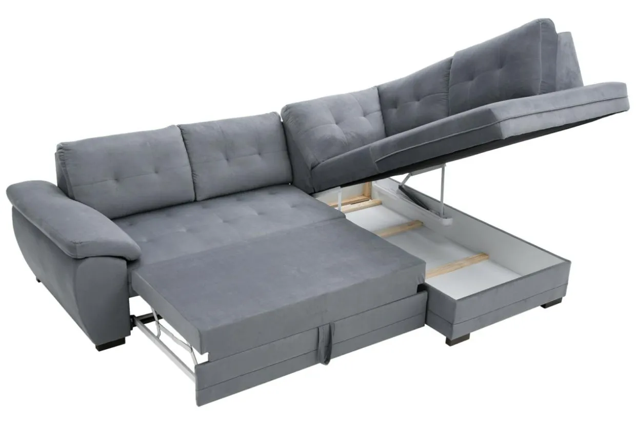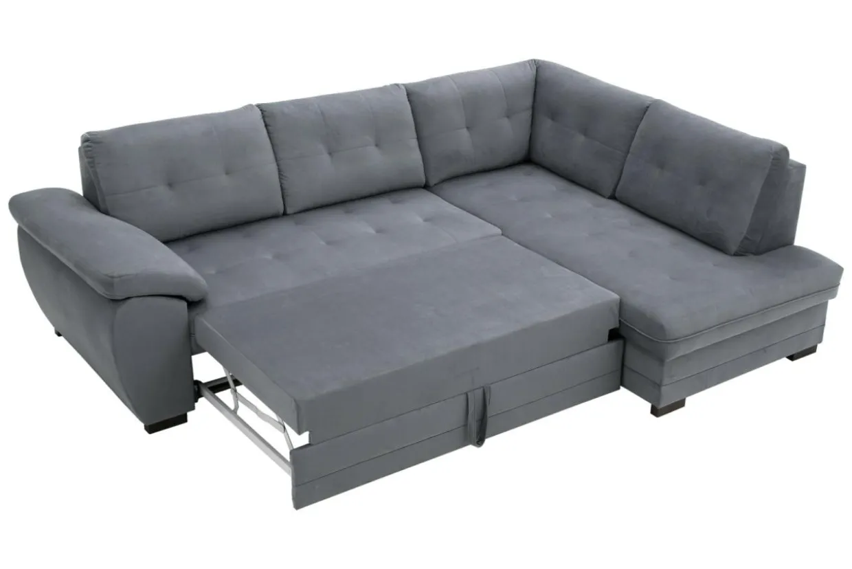 Narożnik rozkłada się poprzez prosty system typu delfin. Wystarczy, że wyciągniesz szufladę spod siedziska i pociągniesz za specjalny uchwyt, aby wyjąć materac.