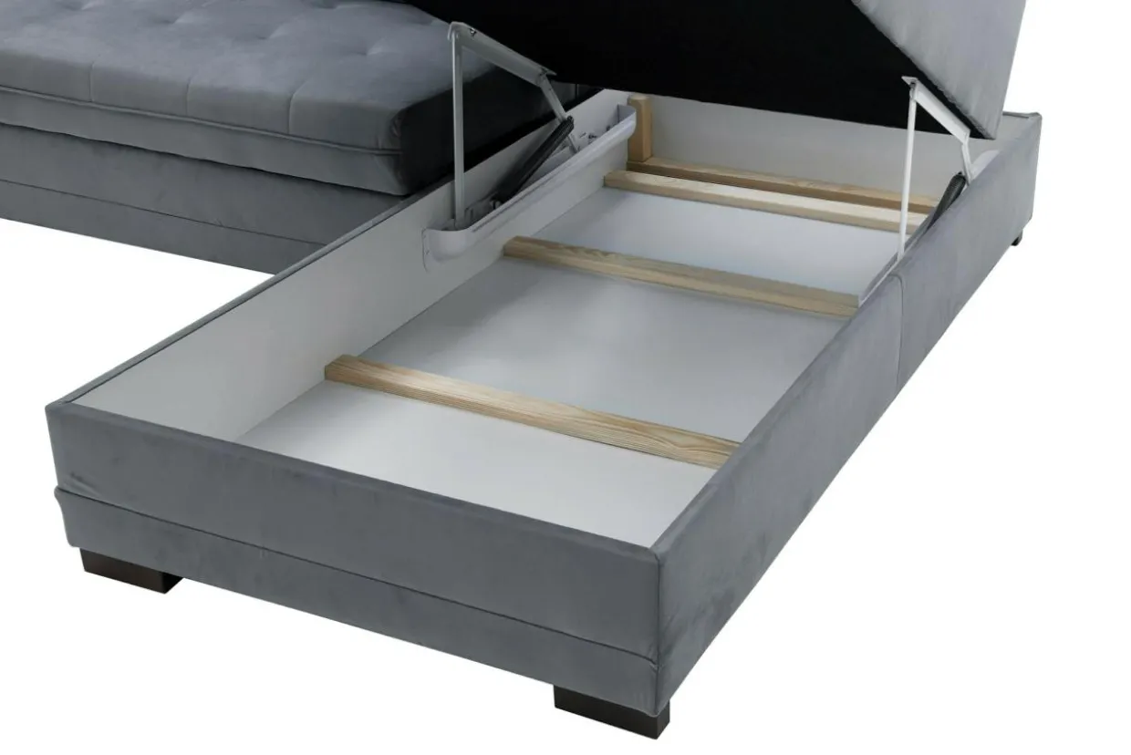 Narożnik ARUBA posiada wmontowany pojemnik. Dzięki niemu oszczędzisz miejsce w szafie, ponieważ pojemnik możesz wykorzystać do przechowywania pościeli, koców lub innych tekstyliów.