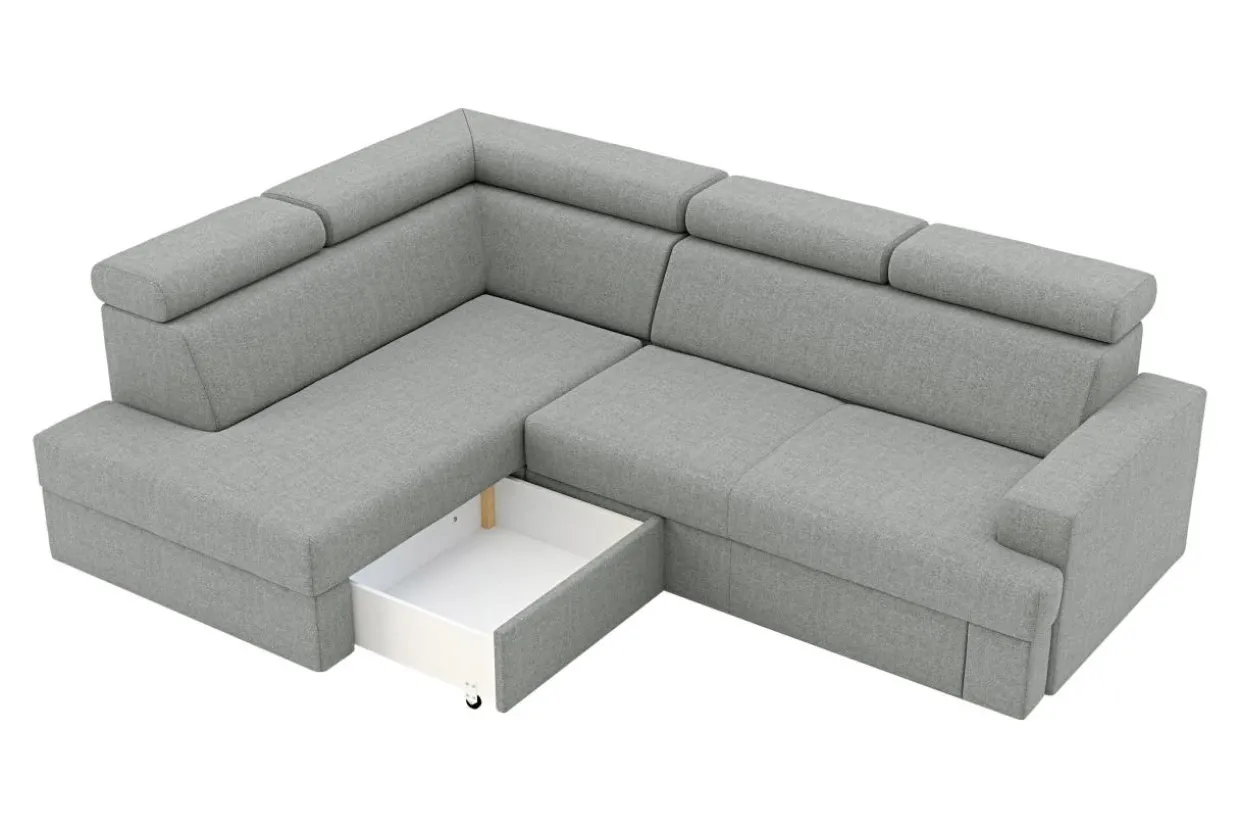 - Narożnik posiada pojemnik na pościel w formie szuflady umieszczonej w otomanie.