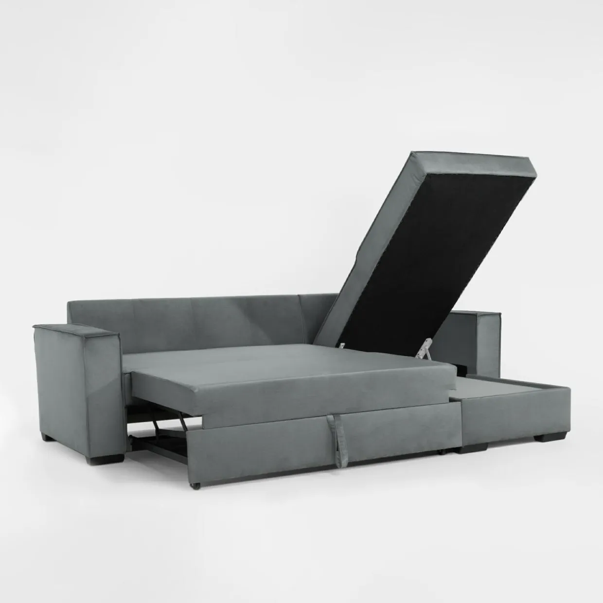 - System delfin pozwoli Ci szybko przygotować dodatkowe miejsce do spania dla gości bez konieczności odsuwania narożnika od ściany.