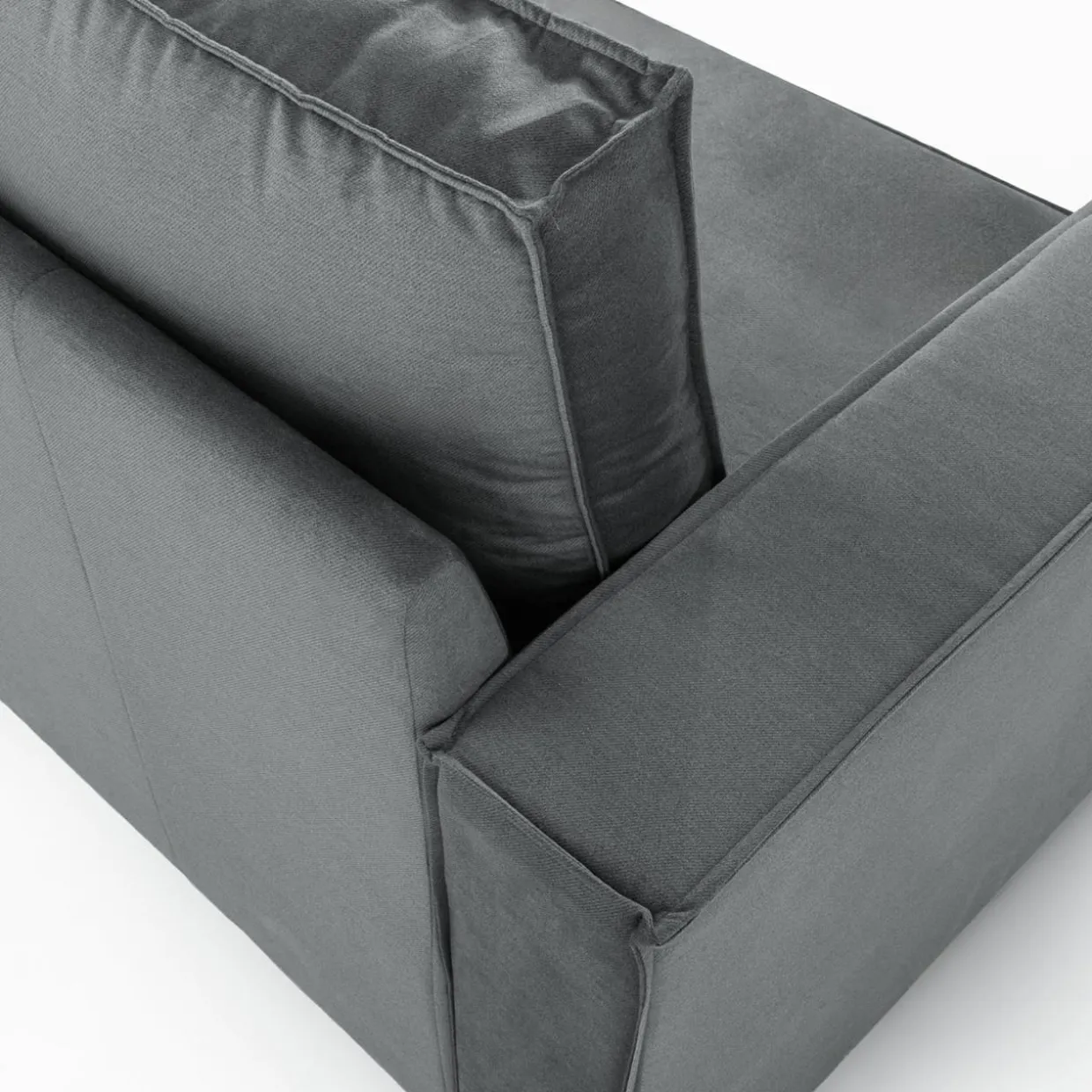 - Przyjemny w dotyku welwet w szarym odcieniu wpisze się w nowoczesną aranżację salonu.