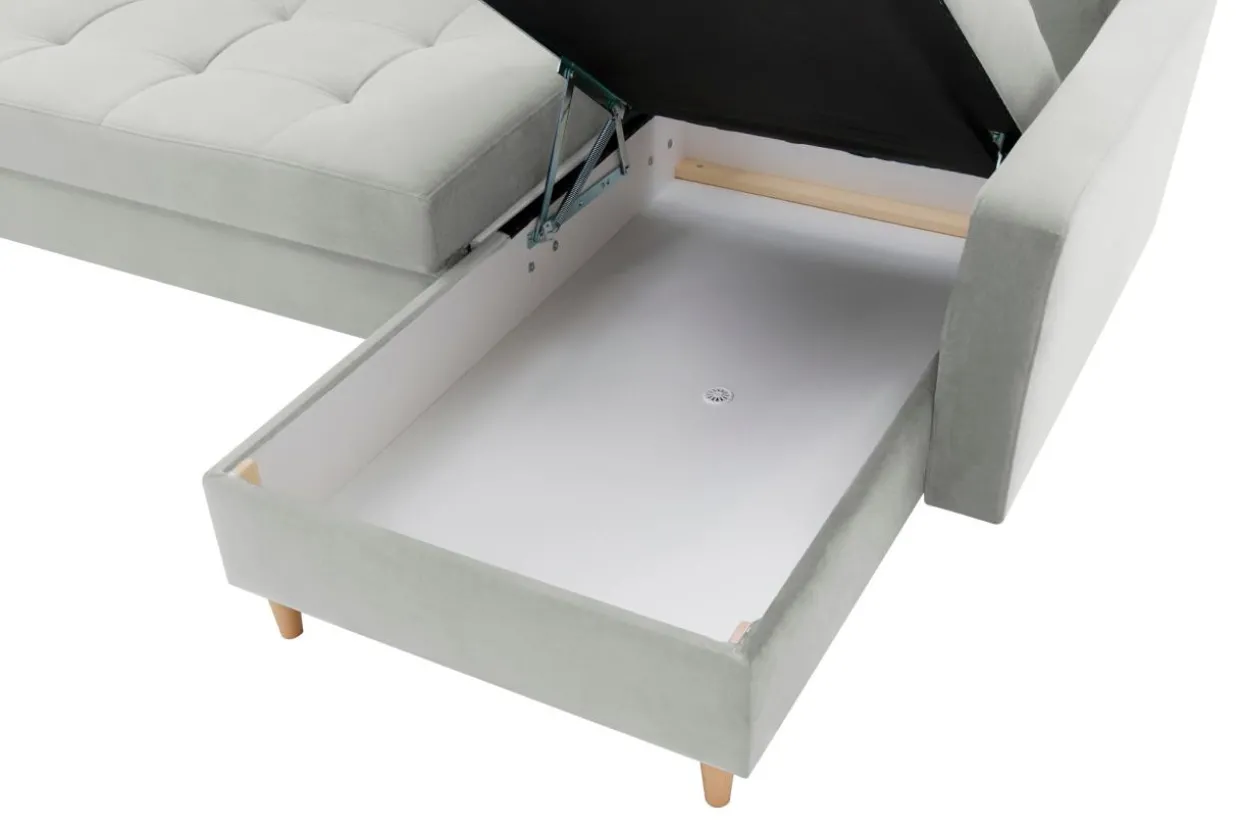- 1 pojemnik znajduje się pod siedziskiem – to idealne miejsce na pościel, ciepły koc lub zapasowe poduszki.