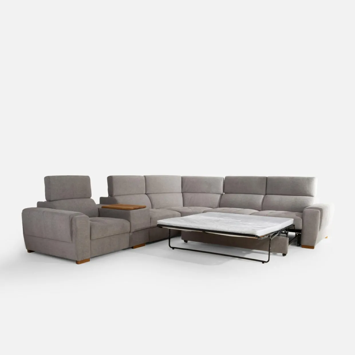 - Narożnik oferuje miejsce do spania – wysuń dolną szufladę sofy aby wyciągnąć z niej stelaż z materacem o powierzchni 140×196 cm.