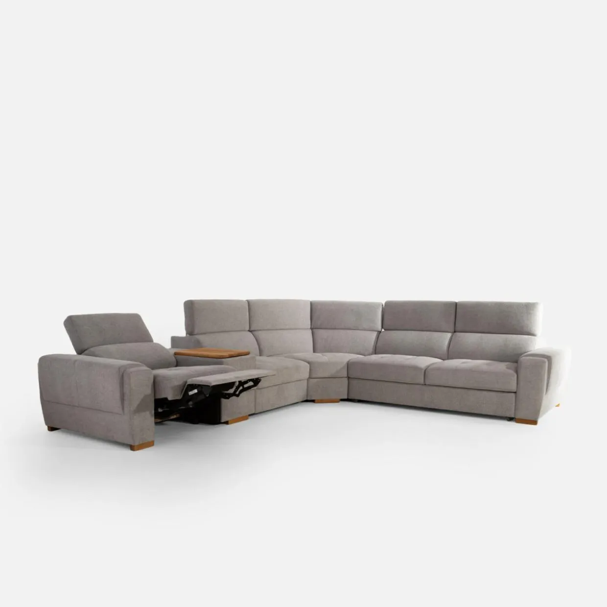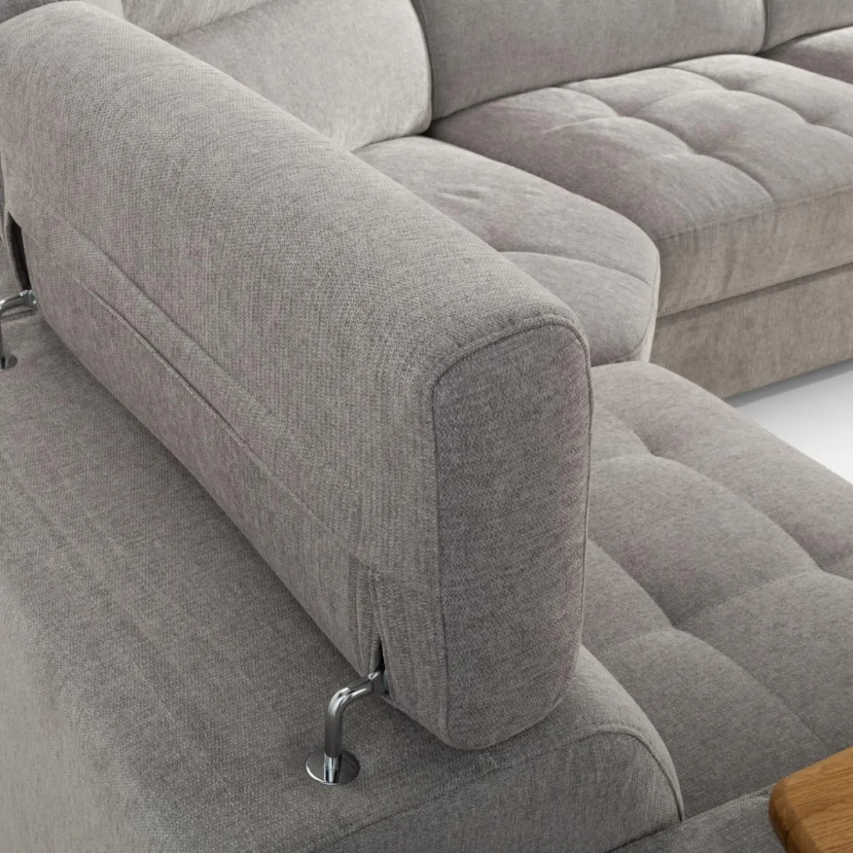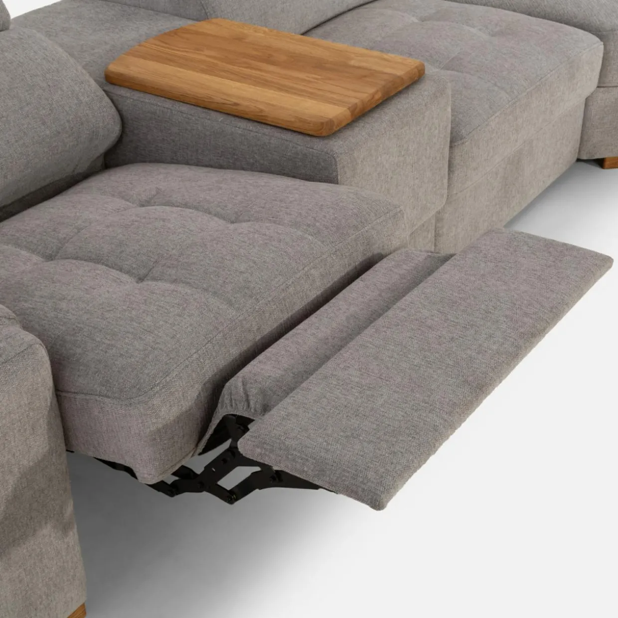 - Narożnik posiada wbudowany fotel z funkcją relaks włączaną elektrycznie – wciśnij guzik, aby wygodnie się odchylić i rozprostować nogi.