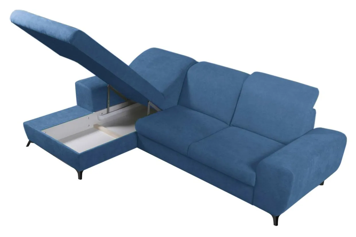 - Poręczny schowek znajduje się w otomanie narożnika. Po uniesieniu do góry siedziska pozwala szybko i bez zbędnego wysiłku wyciągnąć pościel.