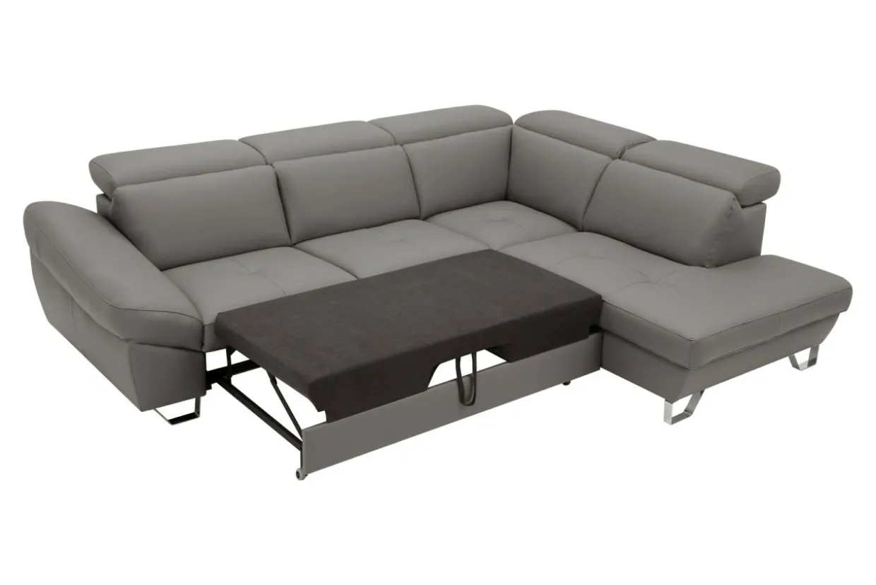Narożnik posiada system rozkładania typu delfin. Dzięki niemu w prosty sposób uzyskasz dodatkową przestrzeń, którą w razie potrzeby możesz wykorzystać do spania.