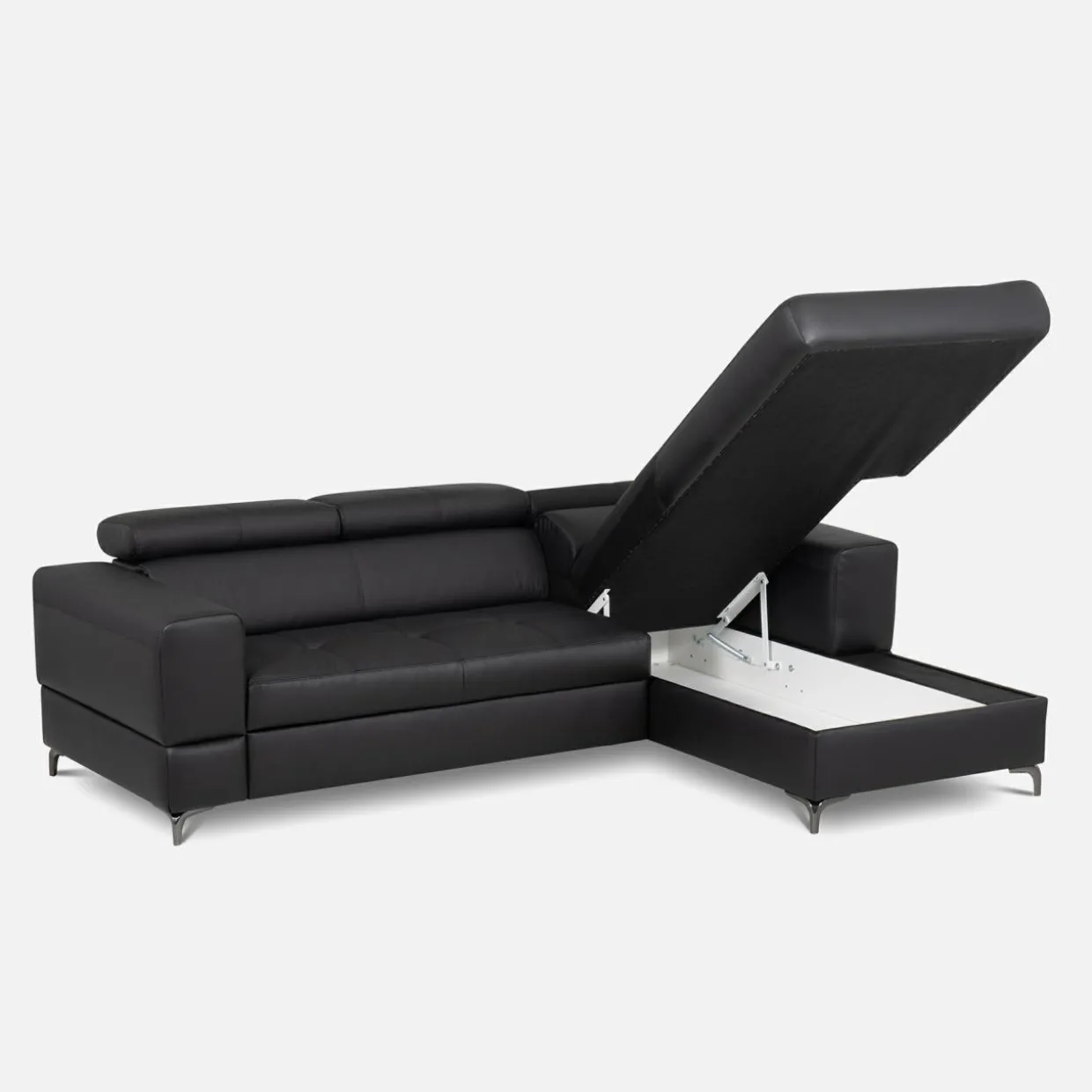 Narożnik posiada wbudowany pojemnik. Możesz wykorzystać go do przechowywania pościeli, koców lub innych tekstyliów.