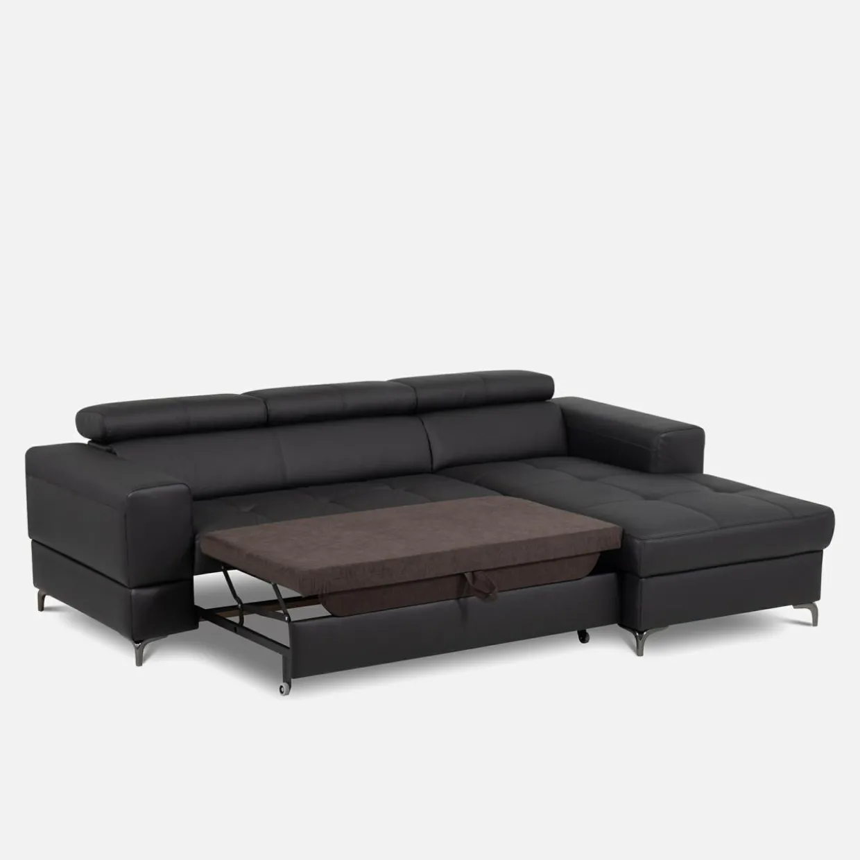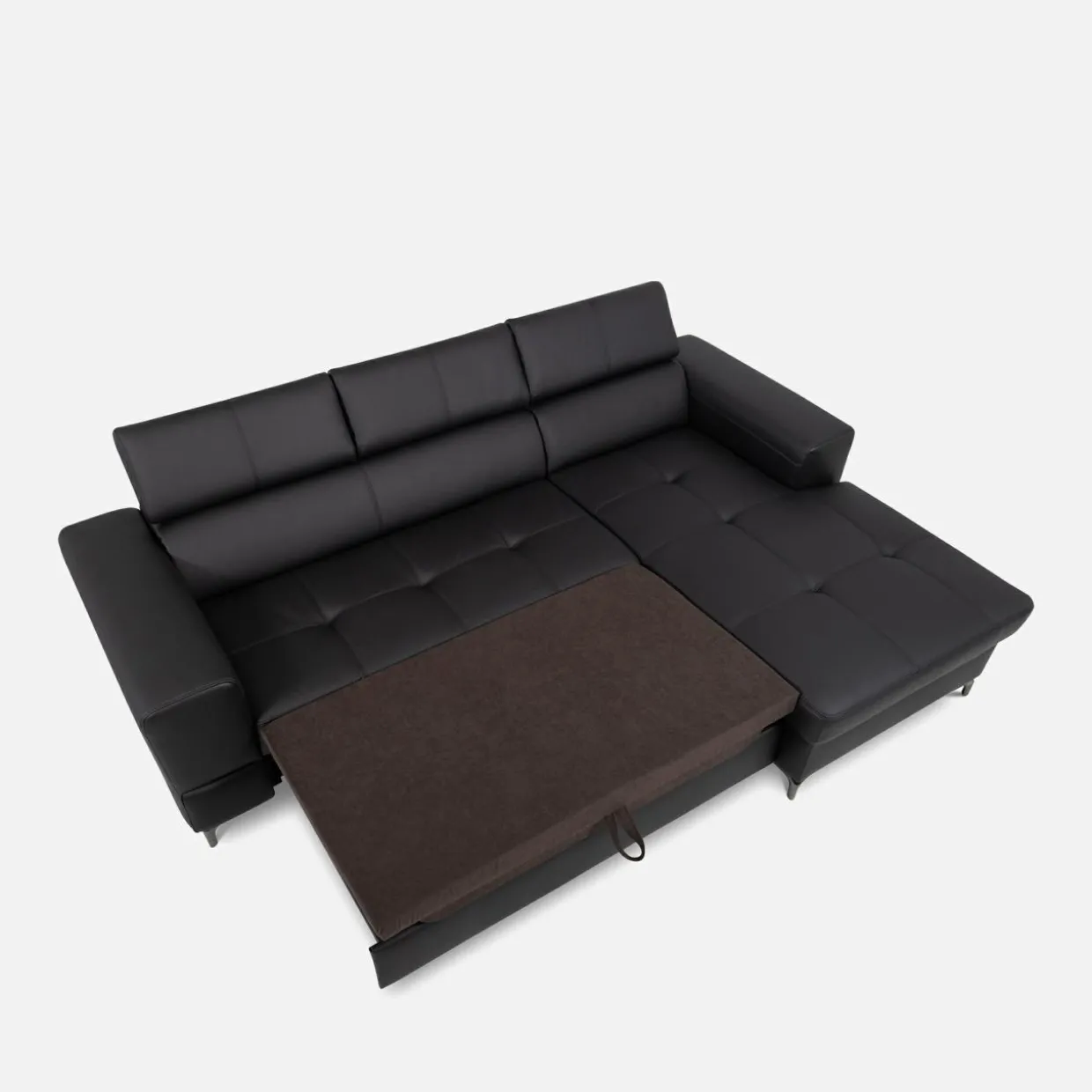 Rozłóż narożnik w następujący sposób: wysuń szufladę znajdującą się pod siedziskiem, pociągnij za specjalny uchwyt, wyciągnij materac.