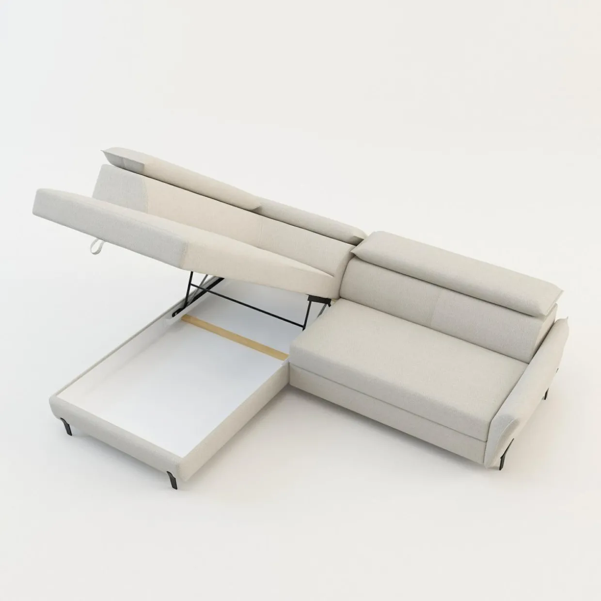 Stelaż pod siedziskiem wysuwamy i podnosimy za pomocą uchwytu. Mebel nie wymaga odsuwania od ściany. Idealny do okazjonalnego spania.
