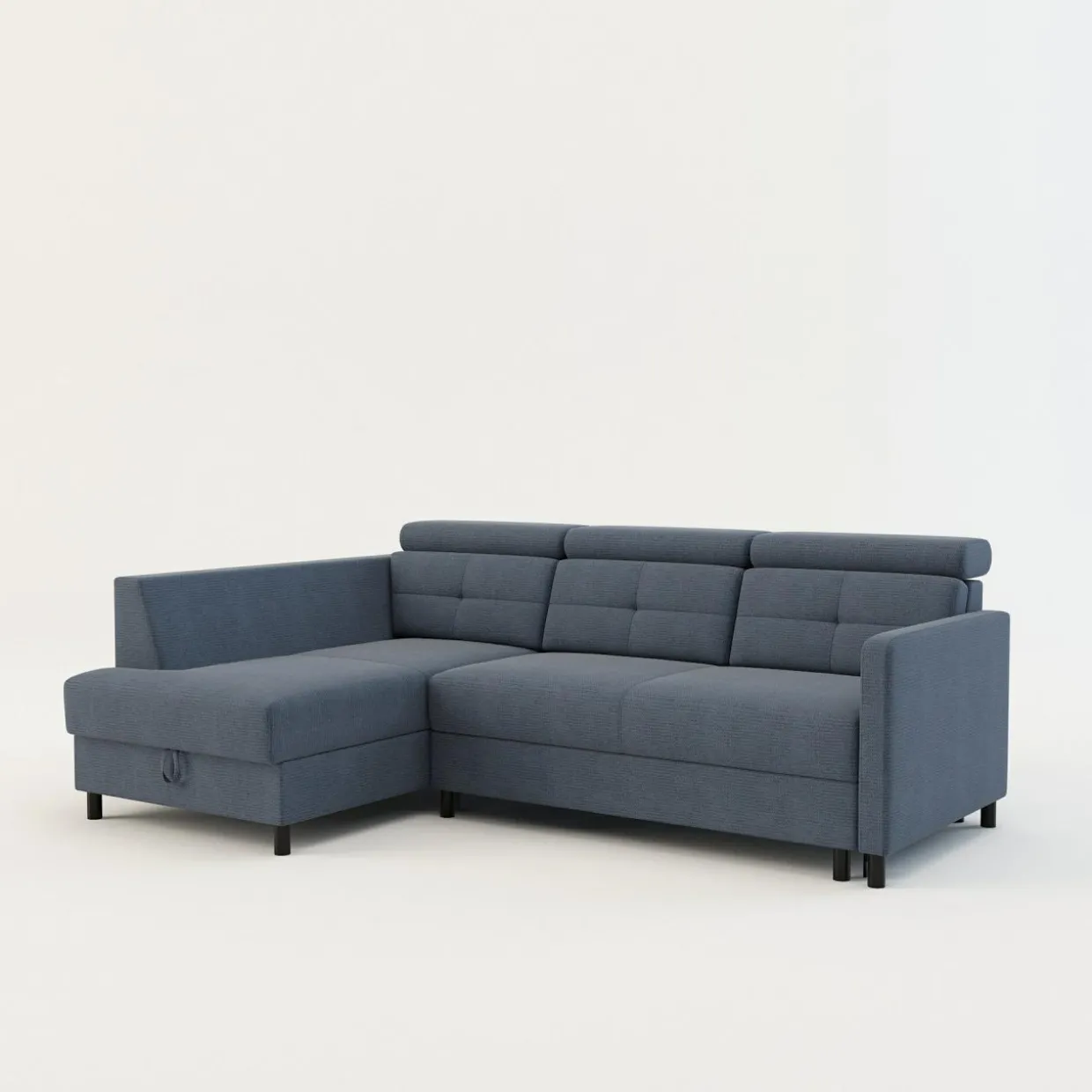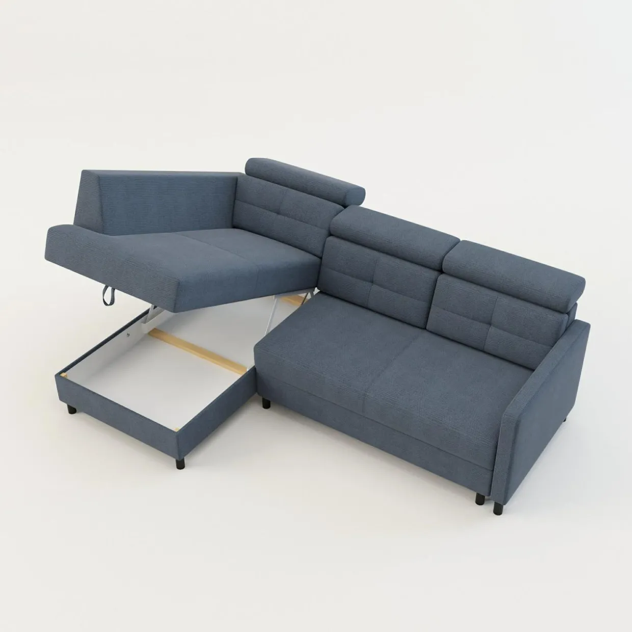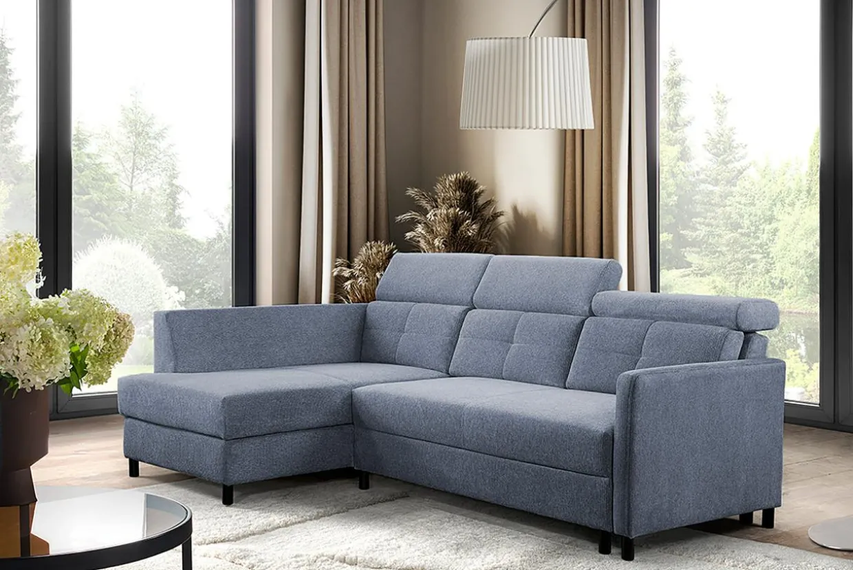 - Pojemnik w leżance będzie wygodnym miejscem do przechowywania pościeli i innych domowych tekstyliów. Możesz z niego korzystać, nawet gdy narożnik będzie rozłożony.