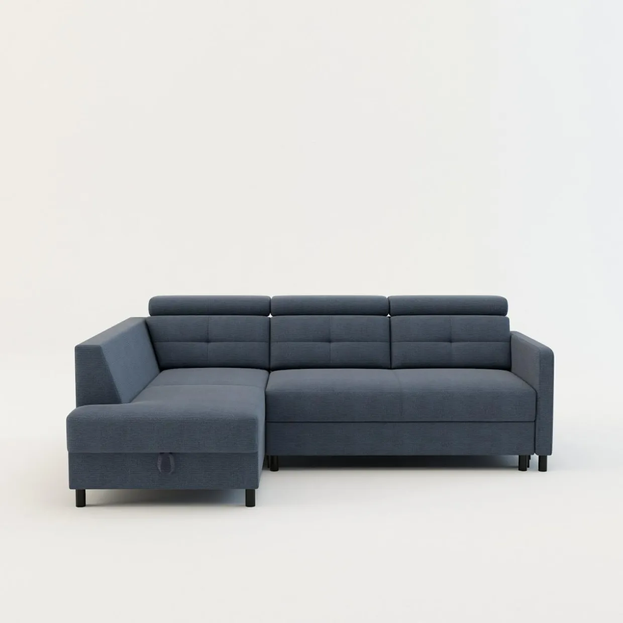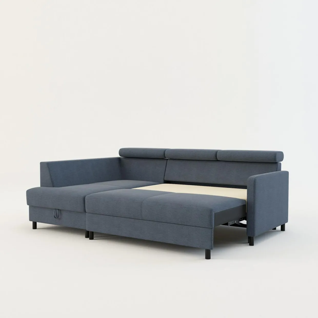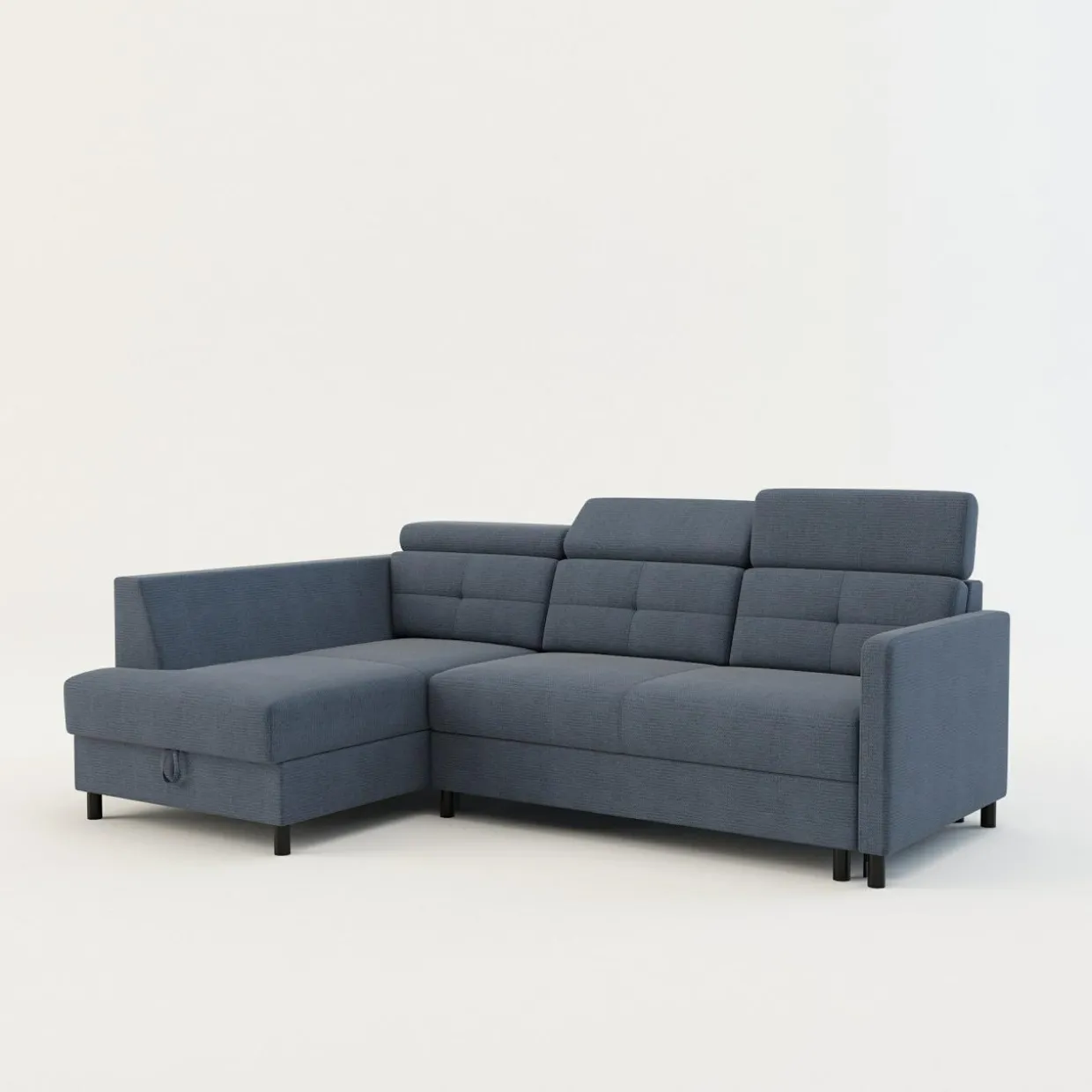 - Pojemnik w leżance będzie wygodnym miejscem do przechowywania pościeli i innych domowych tekstyliów. Możesz z niego korzystać, nawet gdy narożnik będzie rozłożony.