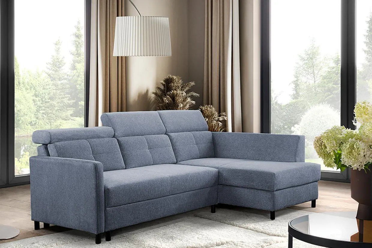 Narożnik rozkładany z regulowanymi zagłówkami niebieski WONDER prawy