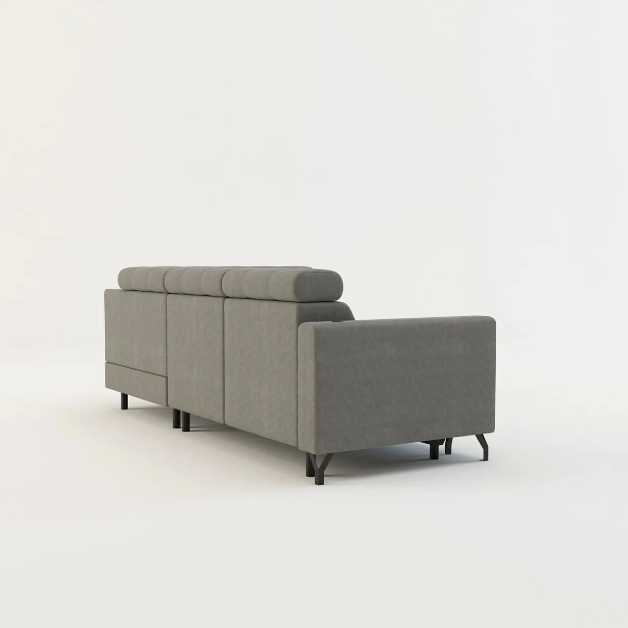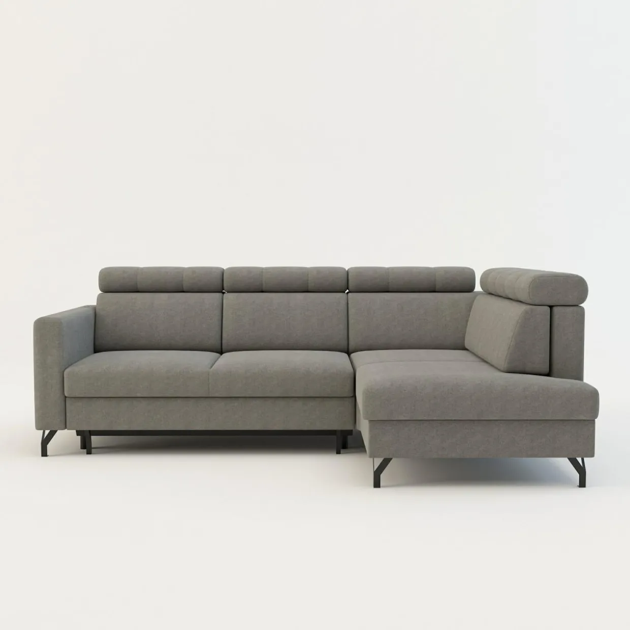 - Pojemnik na pościel w leżance zapewni przestrzeń na pościel, koce i inne domowe tekstylia. Możesz z niego korzystać, nawet jeśli narożnik będzie rozłożony.
