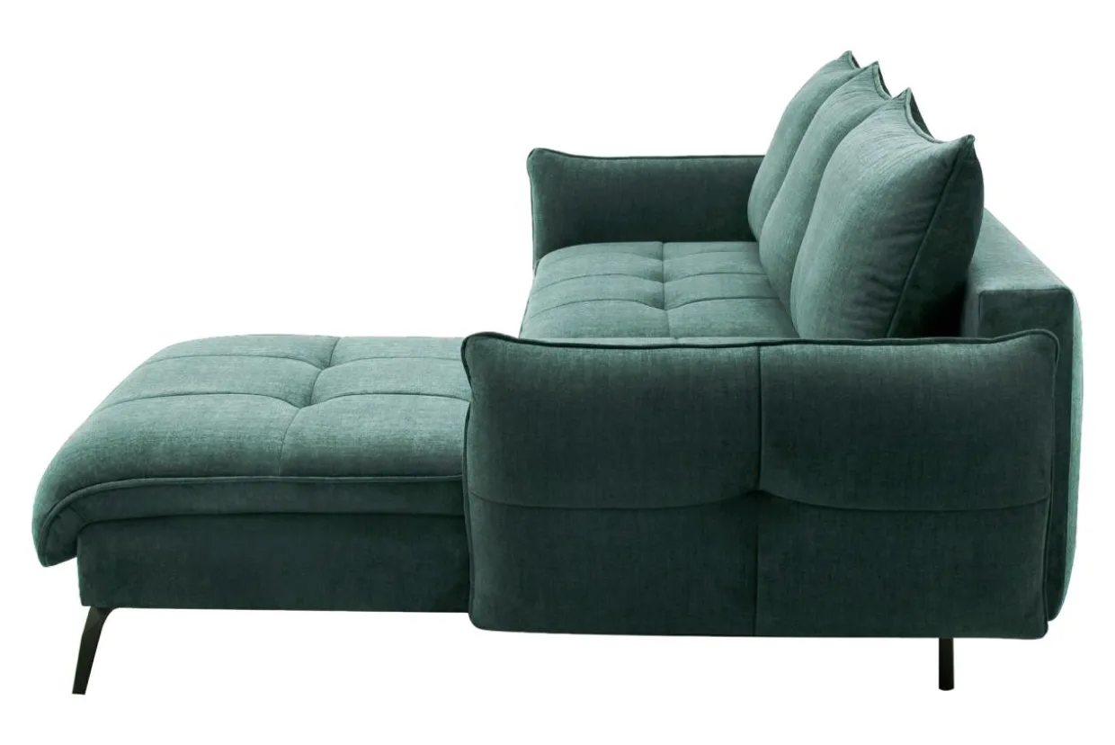 - Metalowe nóżki w czarnym kolorze świetnie pasują do nowoczesnego designu narożnika i dodają mu lekkości.