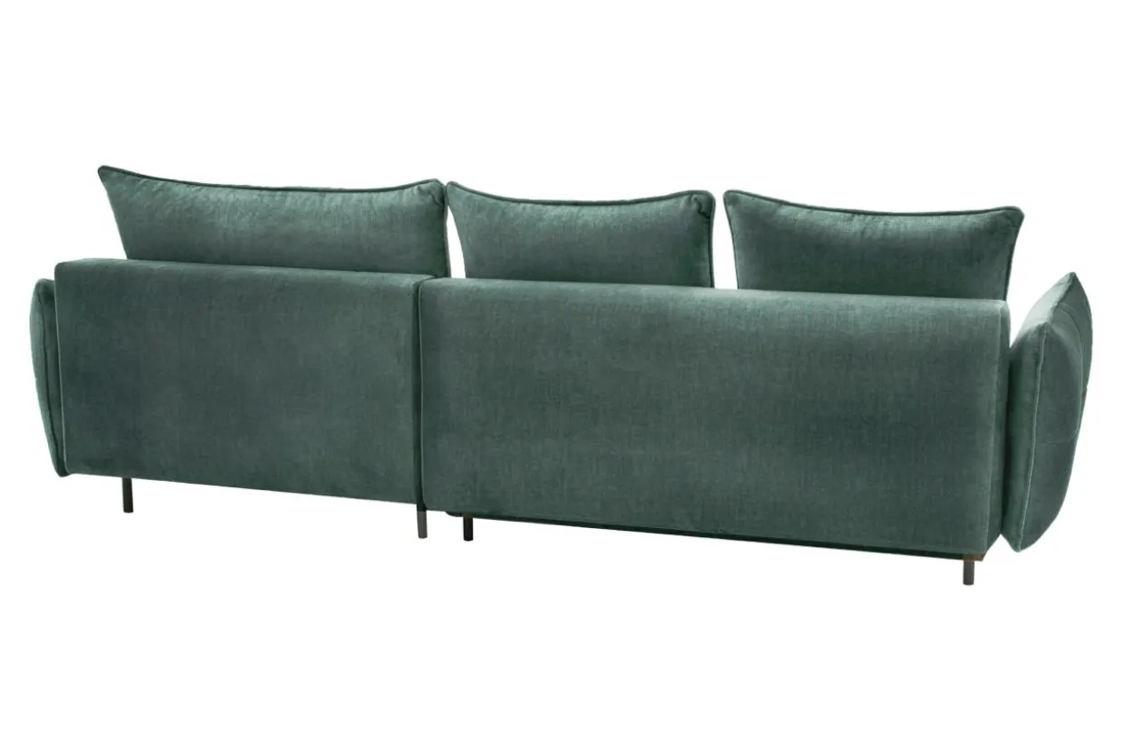 - Narożnik został obity welwetową tkaniną VOGUE w zielonym odcieniu.