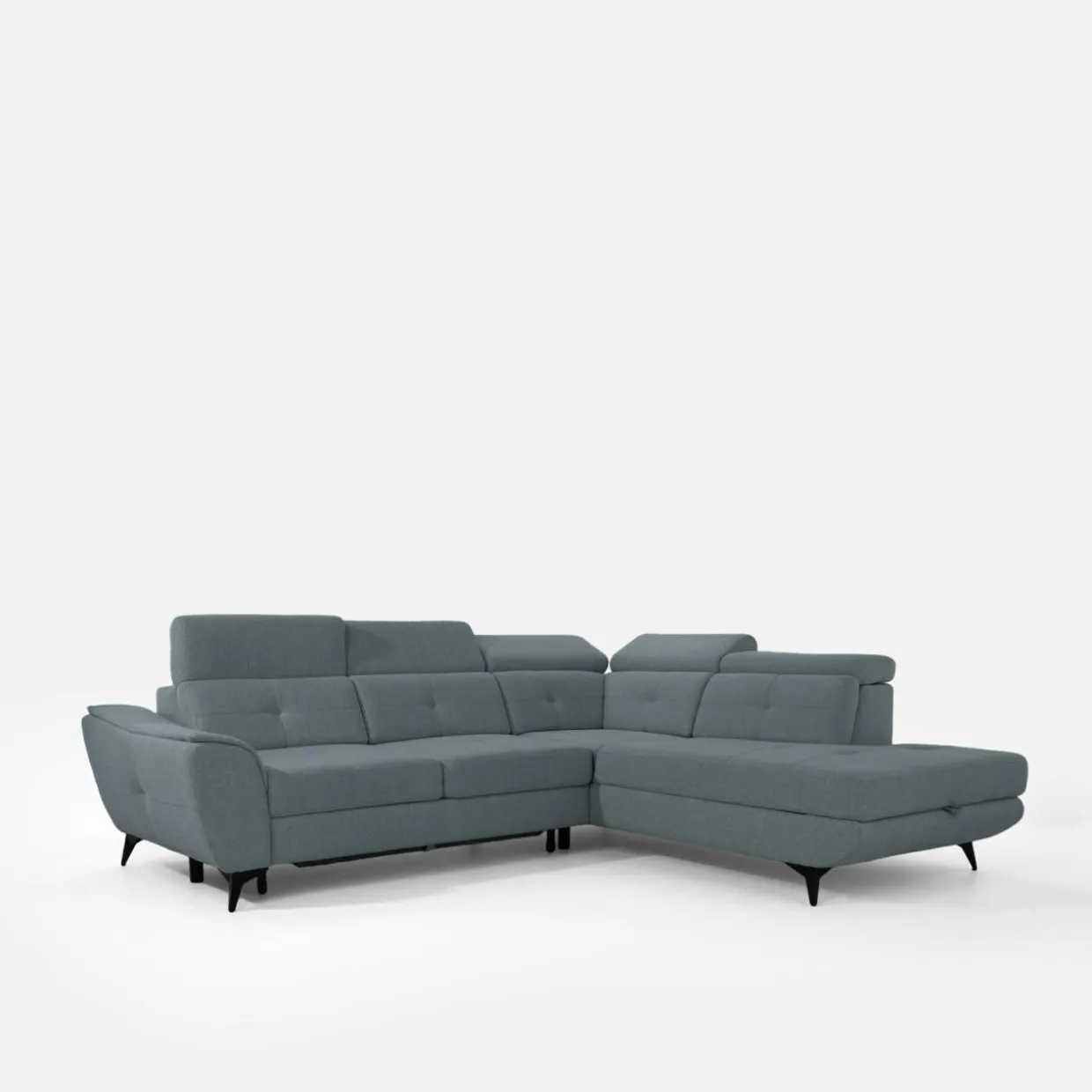 SERGIO to średniej wielkości narożnik wykończony w całości nowoczesną tkaniną PRIMO.