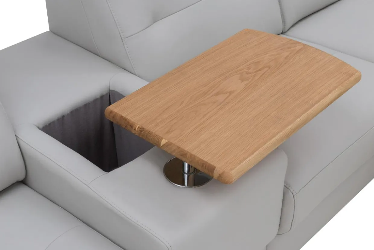 - Otwierany i obrotowy blat sprawdzi się też jako miejsce na filiżankę lub przekąski. W schowku możesz przechować niewielkie akcesoria czy piloty.