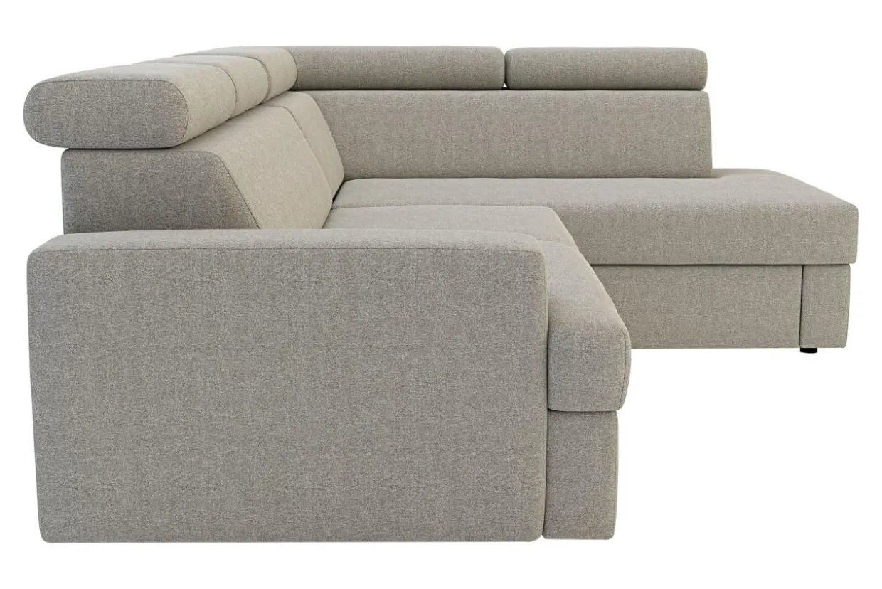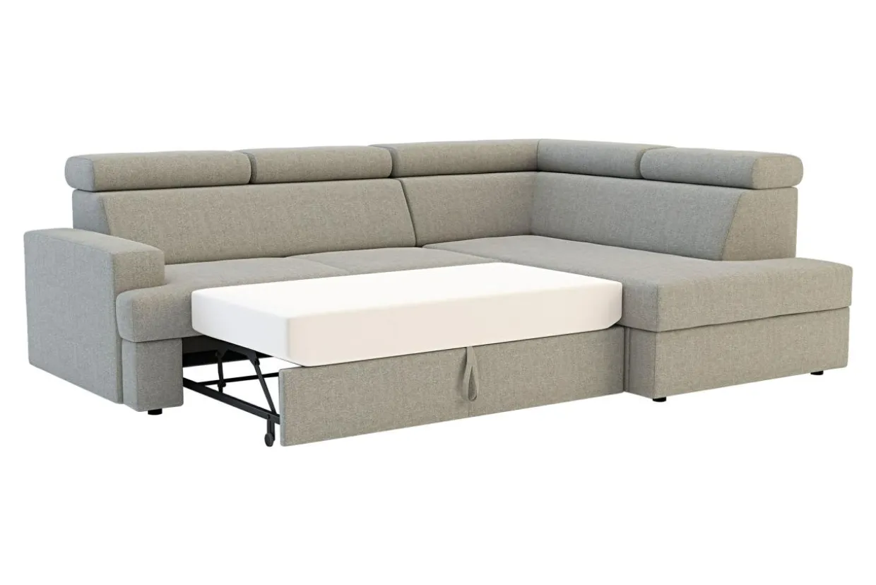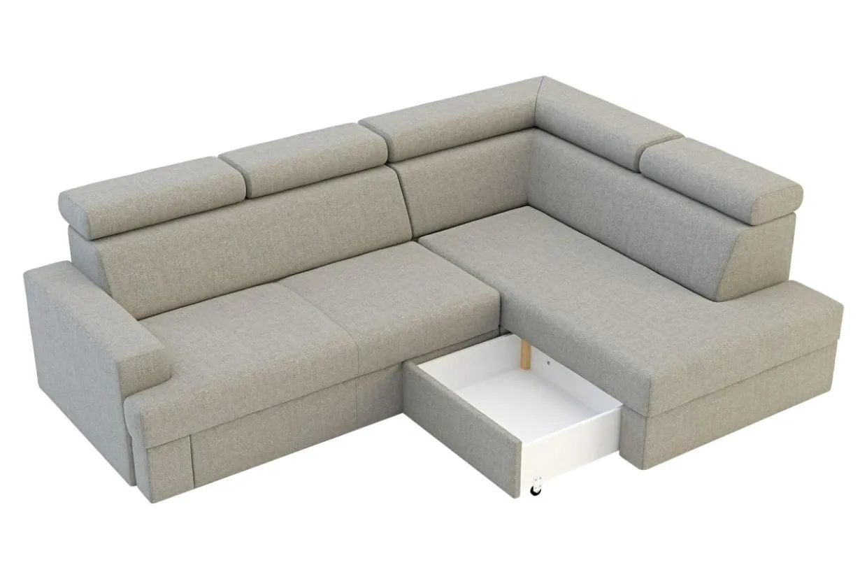 Narożnik posiada pojemnik na pościel w formie szuflady umieszczonej w otomanie.