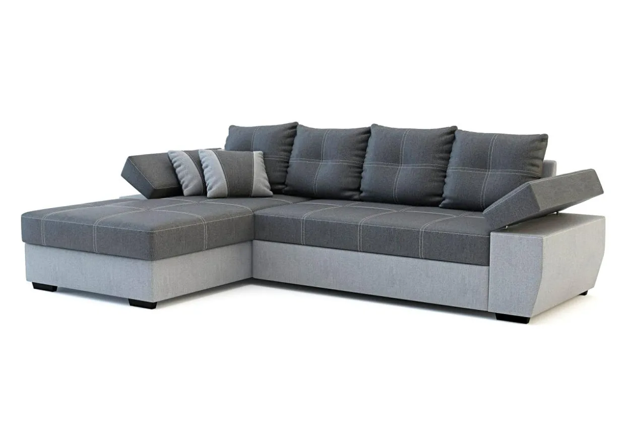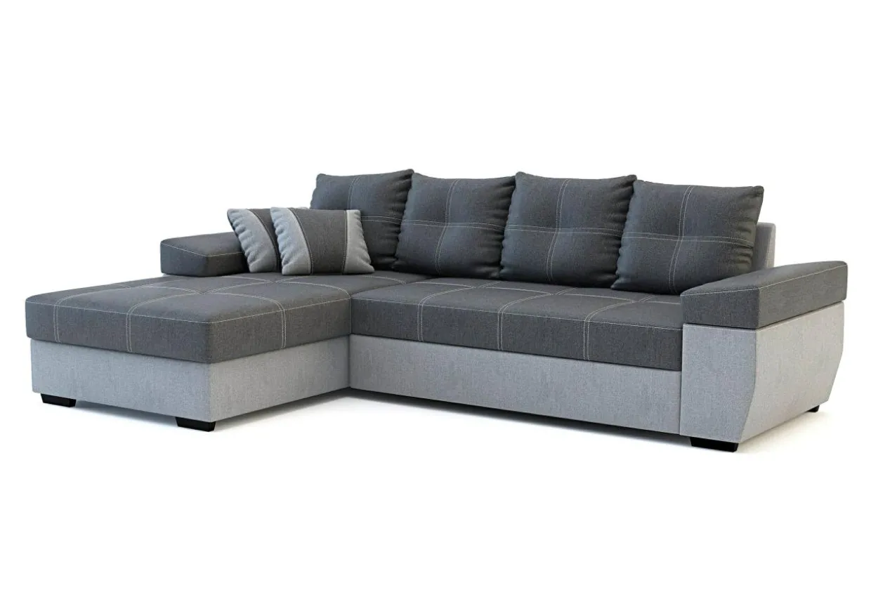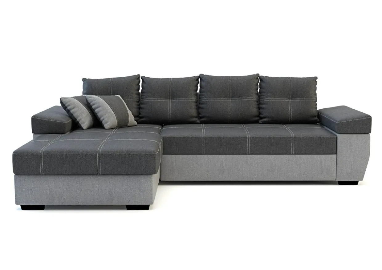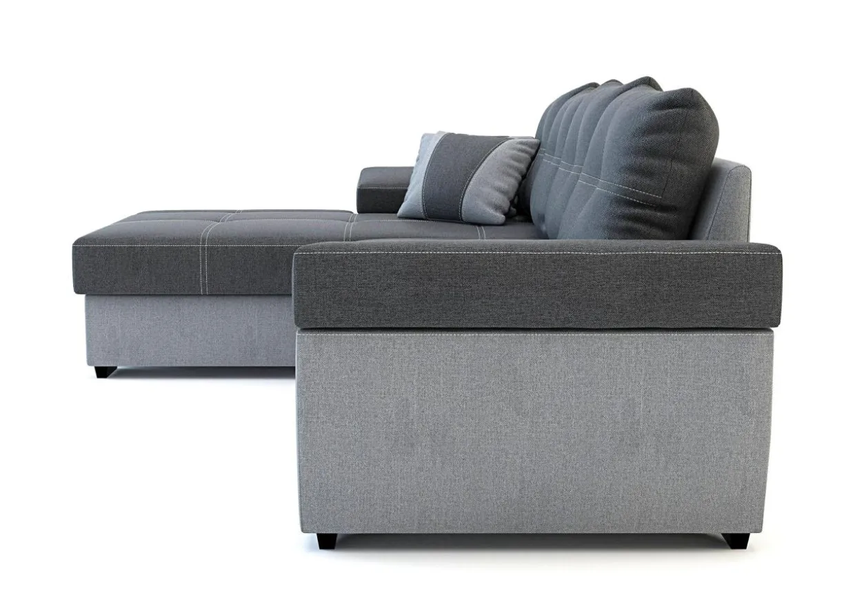 Rozłożysty narożnik LARGO to dobry wybór do obszernego salonu. Nowoczesny styl mebla i ciekawe kontrastowe przeszycia pozwolą każdego dnia cieszyć się wspaniałym wnętrzem i sprawić, że mebel będzie zwracał na siebie uwagę. Tapicerka w ciemnej i jasnej szarości z kontrastowymi nićmi na siedzisku i poduszkach oraz dwoma poduszkami dekoracyjnymi to charakterystyczna cecha tego modelu.