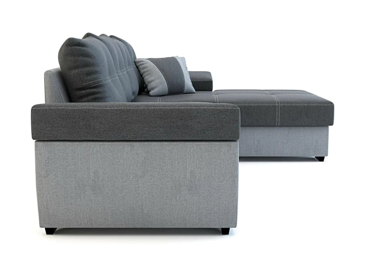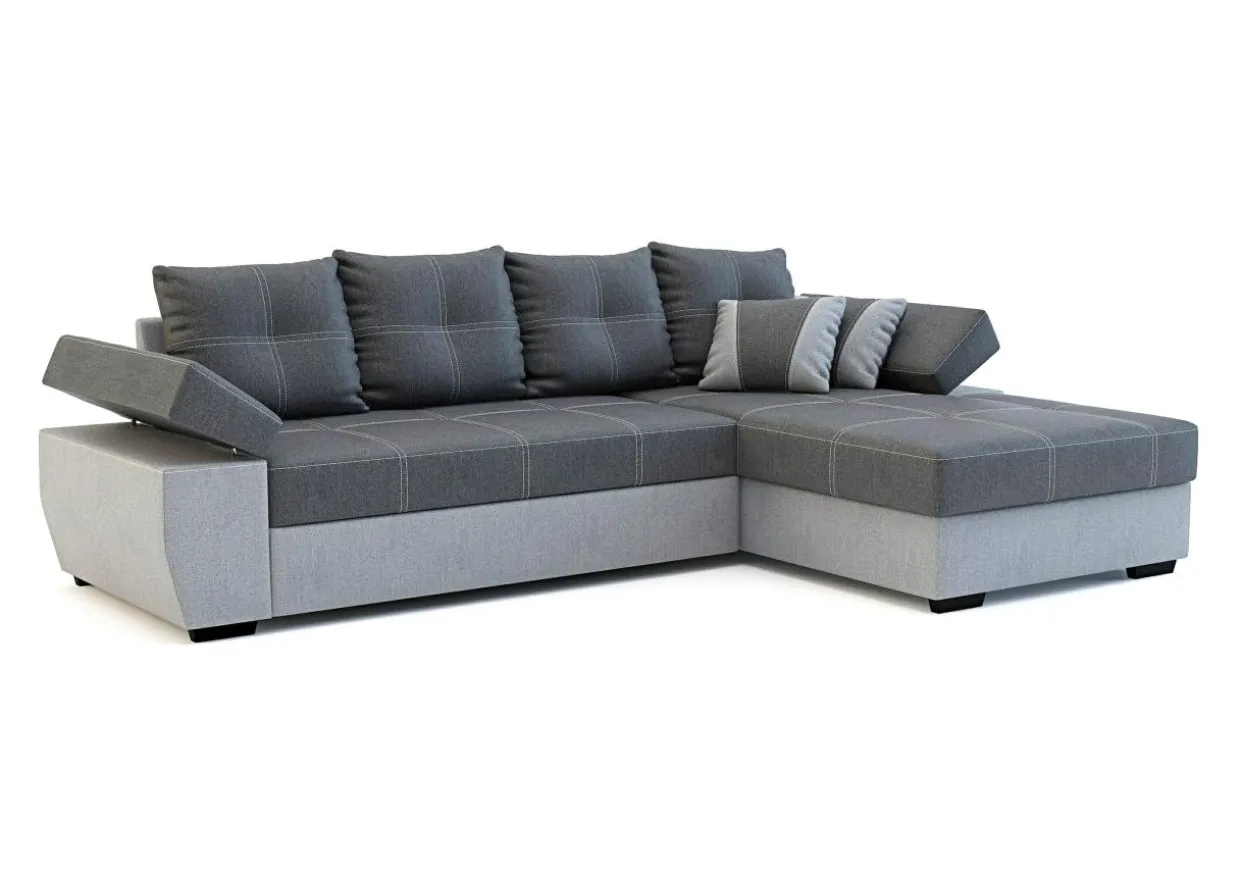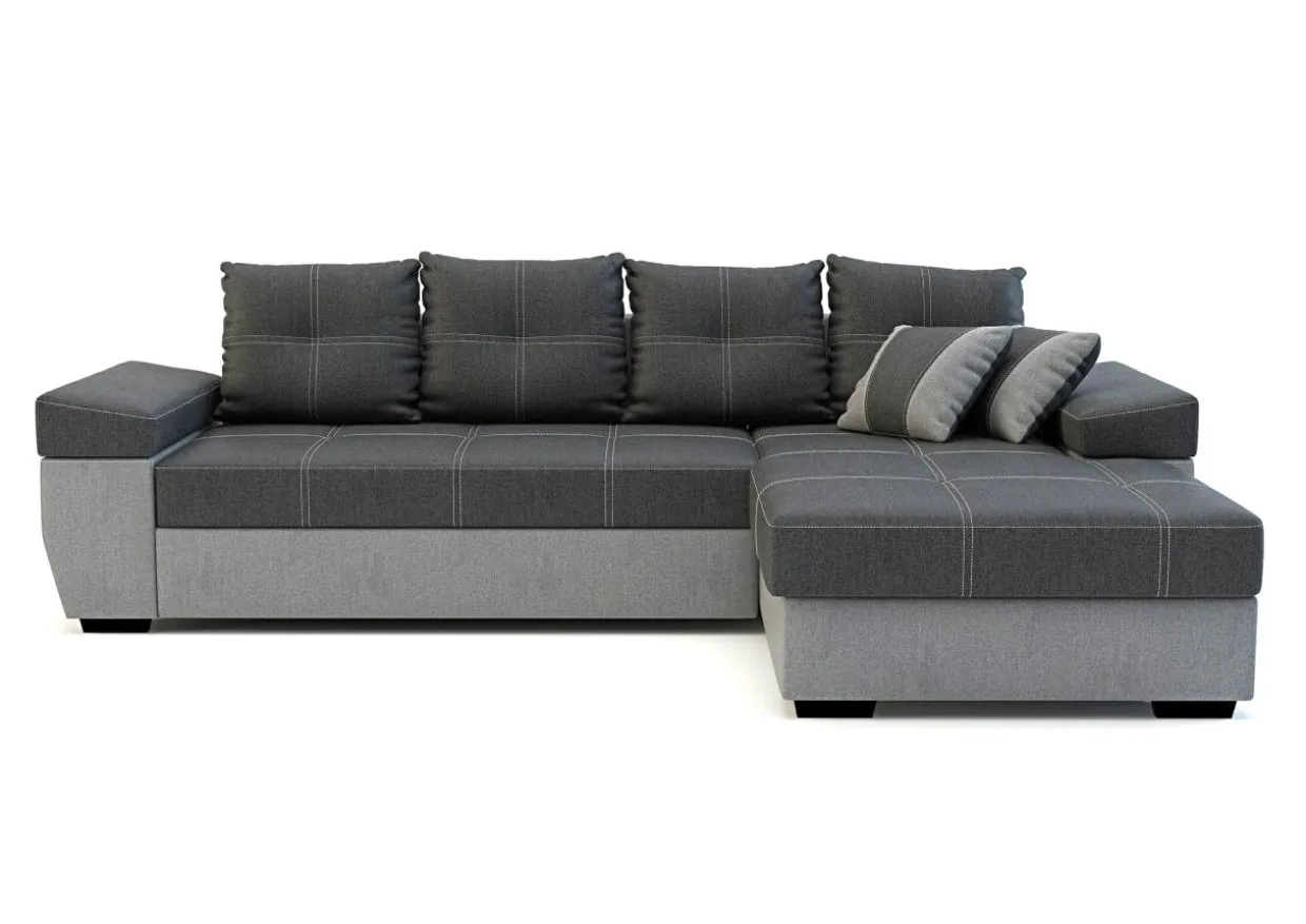 Rozłożysty narożnik LARGO to dobry wybór do obszernego salonu. Nowoczesny styl mebla i ciekawe kontrastowe przeszycia pozwolą każdego dnia cieszyć się wspaniałym wnętrzem i sprawić, że mebel będzie zwracał na siebie uwagę. Tapicerka w ciemnej i jasnej szarości z kontrastowymi nićmi na siedzisku i poduszkach oraz dwoma poduszkami dekoracyjnymi to charakterystyczna cecha tego modelu.