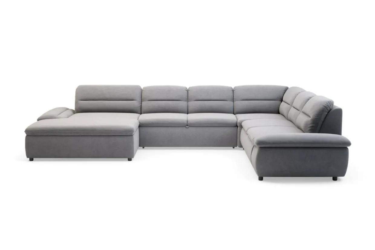 Dzięki zastosowaniu funkcji „delfin” narożnik TAURO NEW można łatwo rozłożyć. Wystarczy podnieść i wysunąć stelaż znajdujący się pod siedziskiem.