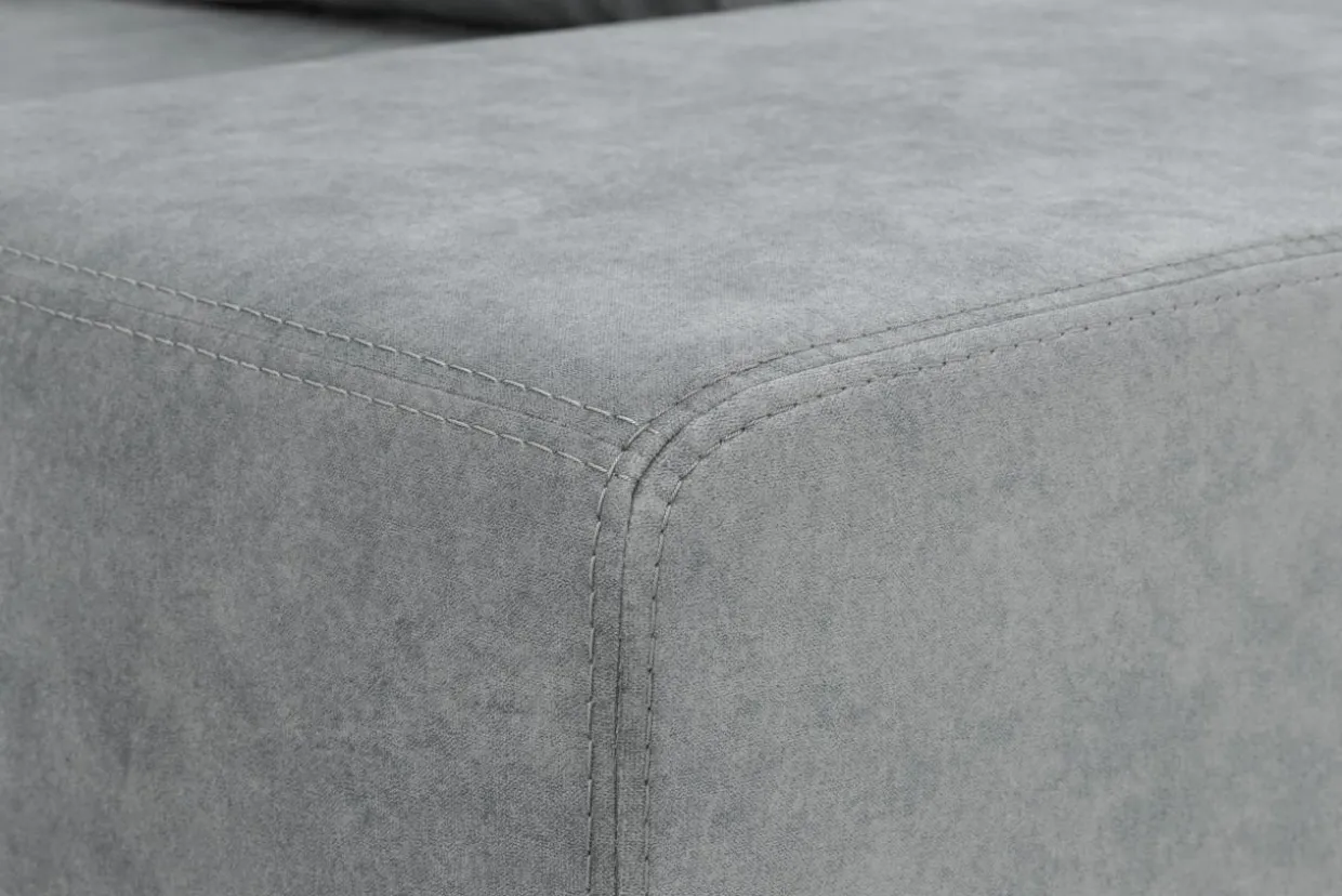 Narożnik VENETO został wykończony tkaniną ZETTA – przyjemnym w dotyku materiałem weulrowym o eleganckiej fakturze. Jednak jej najistotniejszą funkcją jest zwiększona odporność przed szybkim przesiąkaniem płynów za pomocą systemu NANO BLOCK. Rolę dekoracyjną w narożniku VENETO pełnią także nóżki. Wykonane z naturalnego drewna i pomalowane na kolor wenge w estetyczny sposób łączą się z bryłą mebla oraz kolorem tapicerki.