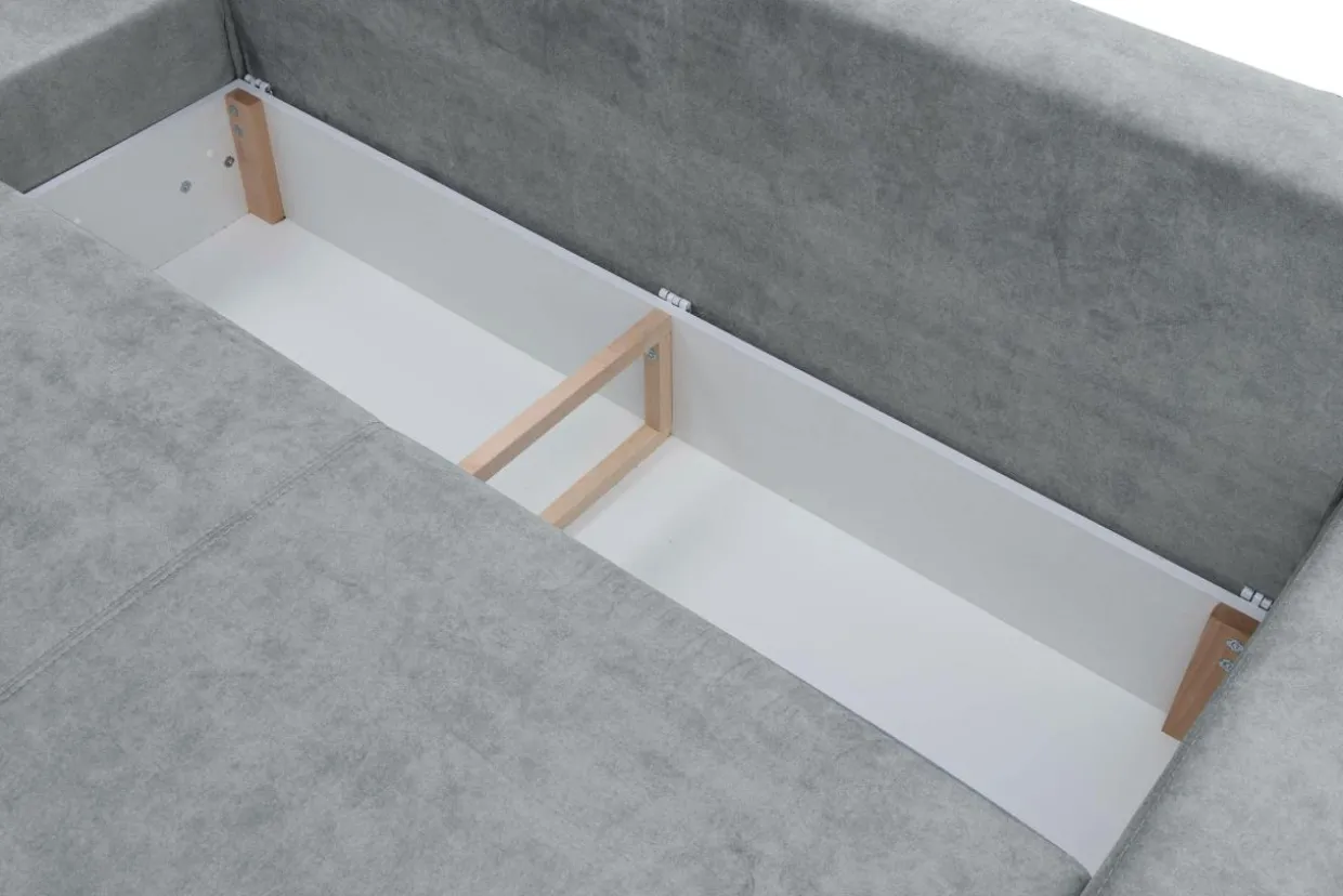 Mechanizm ułatwiający rozkładanie mebla oraz pojemnik na pościel są praktycznym rozwiązaniem, które pozwala szybko i sprawnie przygotować mebel pod kątem nocnego wypoczynku.