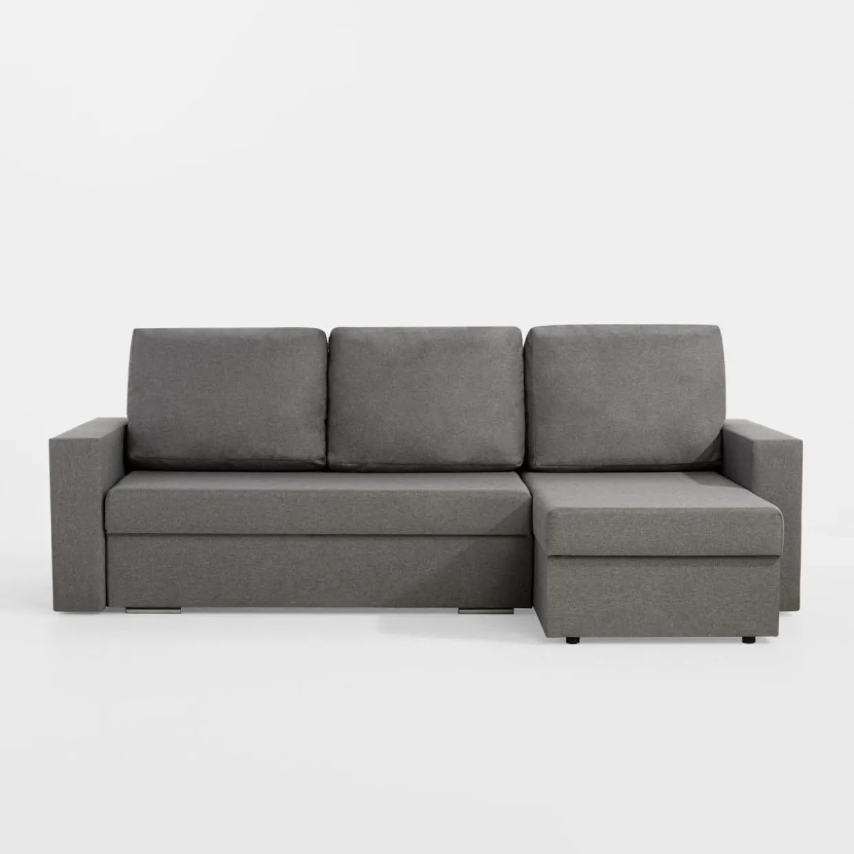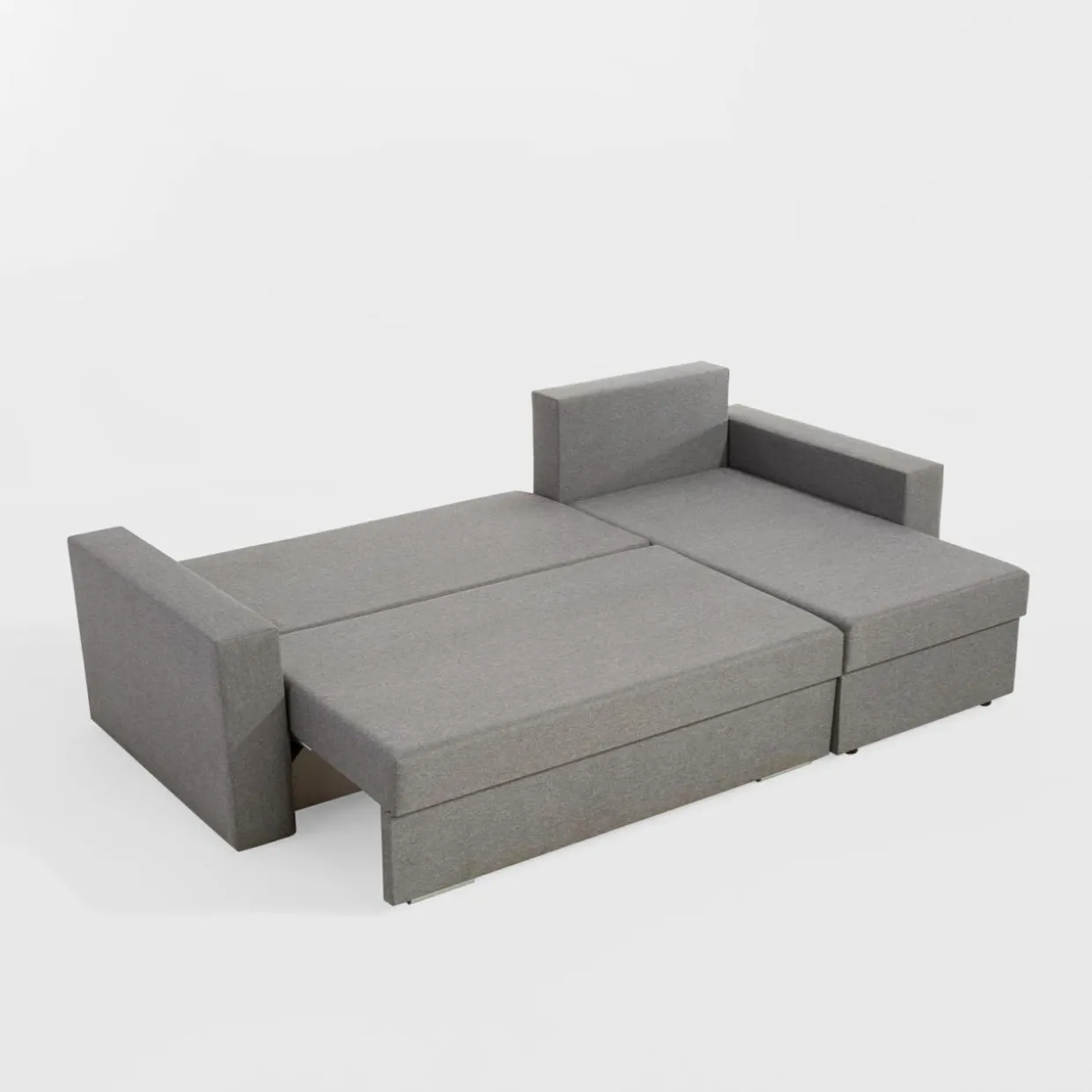 W celu rozłożenia narożnika zdejmij poduchy, a następnie wysuń siedzisko. Na koniec zamknij zagłówek i gotowe.