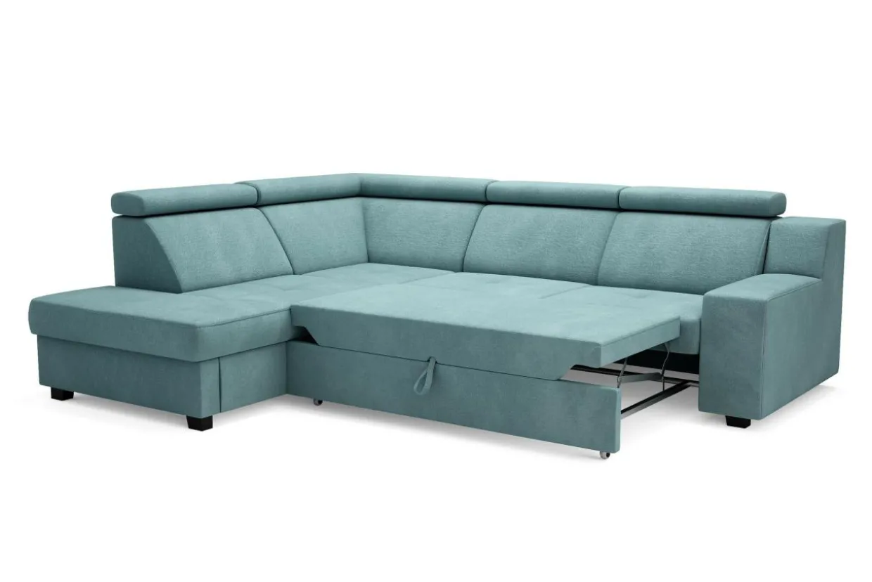Stelaż pod siedziskiem wysuwamy i podnosimy za pomocą uchwytu. Mebel nie wymaga odsuwania od ściany. Idealny do okazjonalnego spania.