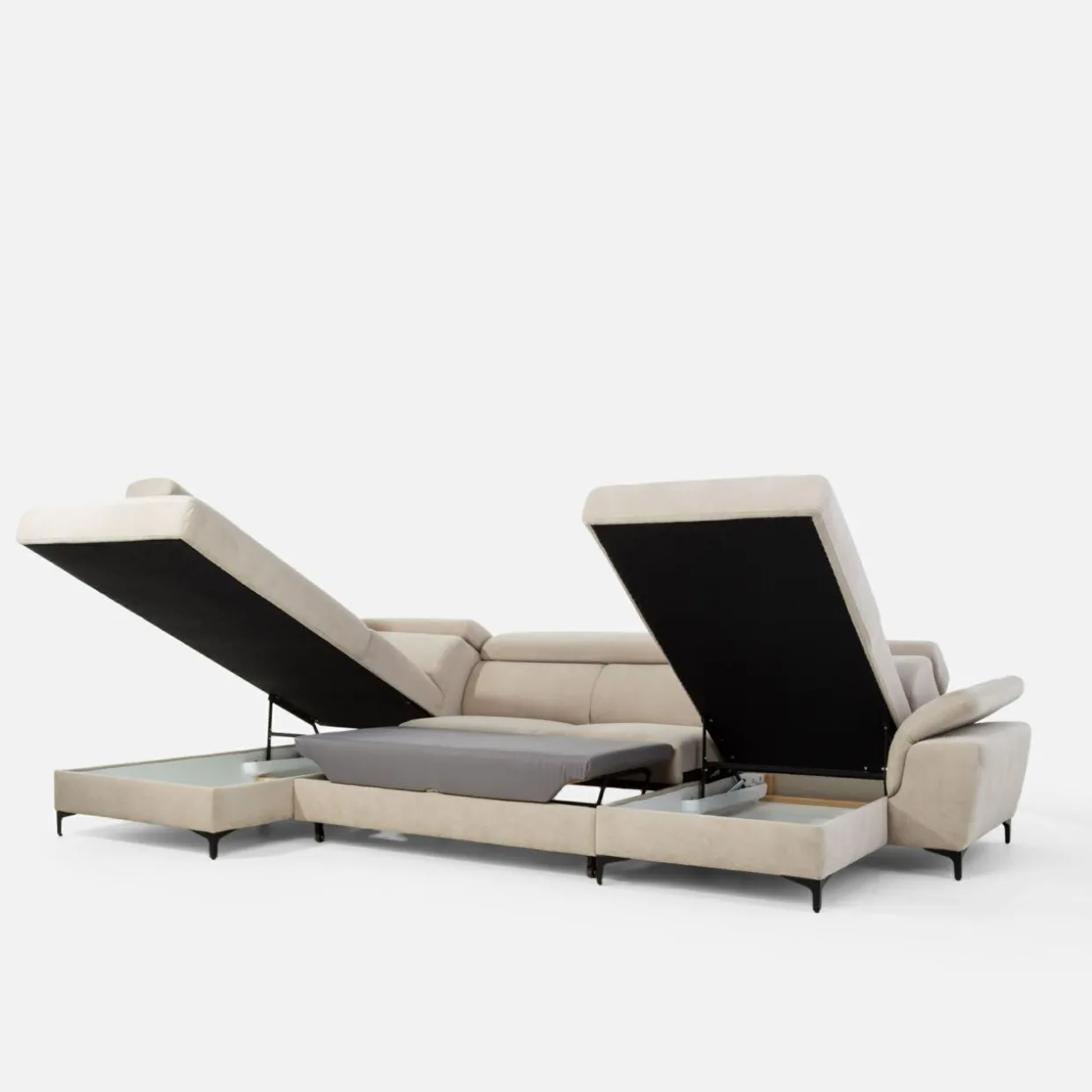 Stelaż pod siedziskiem wysuwamy i podnosimy za pomocą uchwytu. Mebel nie wymaga odsuwania od ściany. Idealny do okazjonalnego spania.