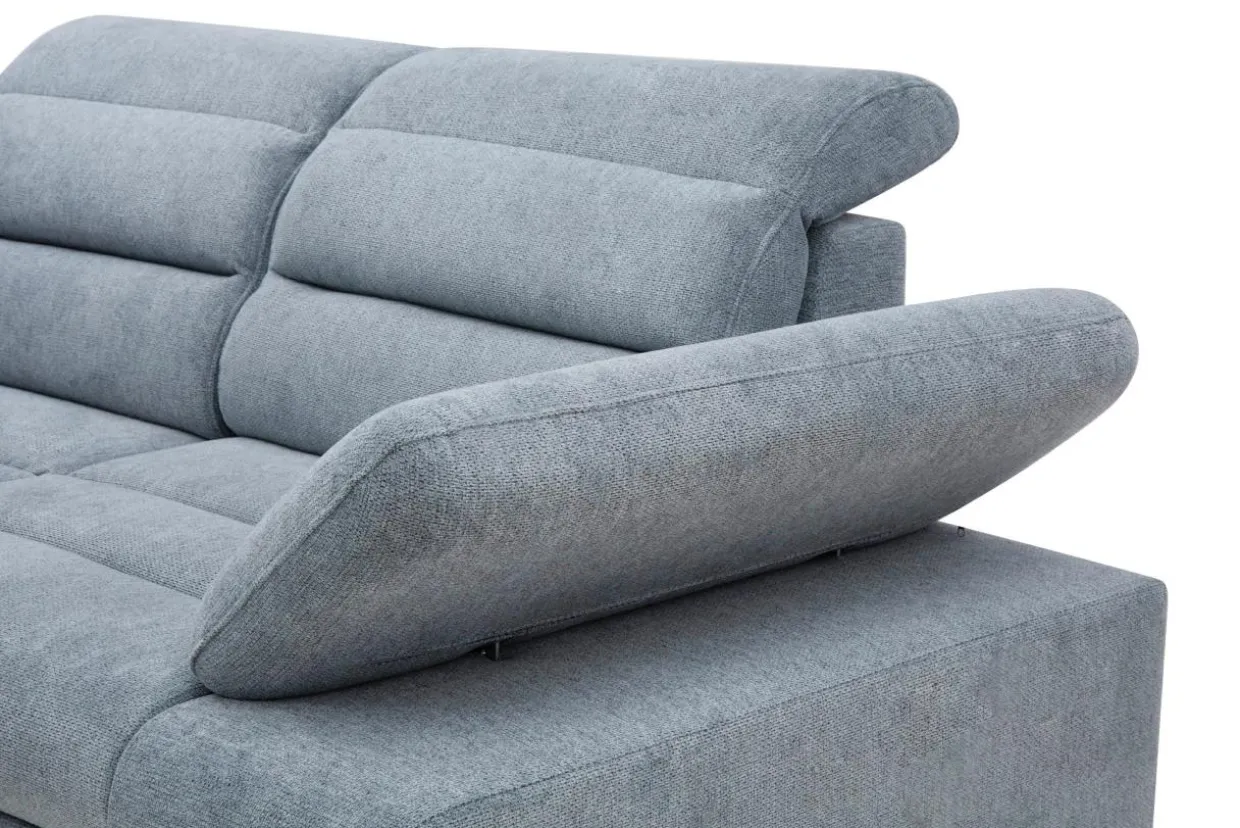 - Narożnik pokryto strukturalną tkaniną ARAGON w jasnoniebieskim kolorze.