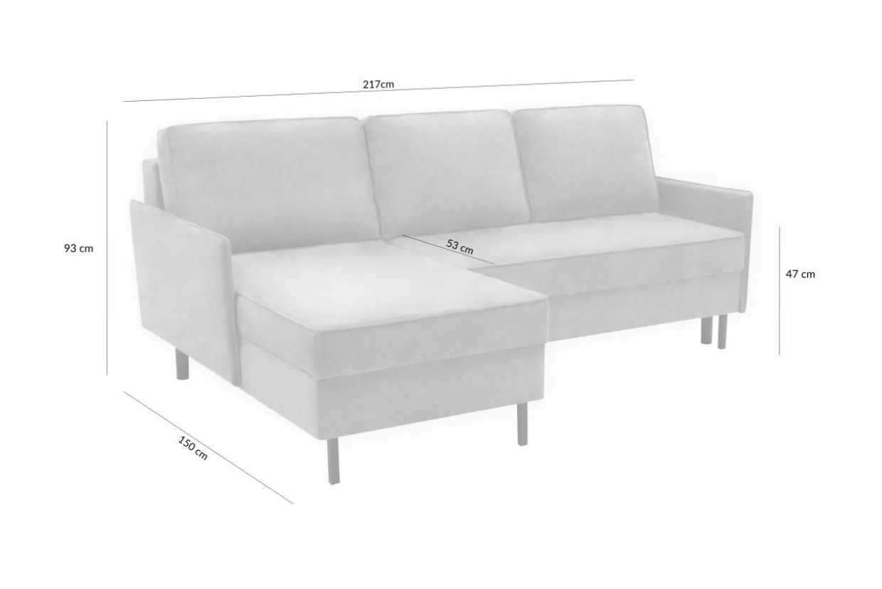 - 1 pojemnik znajduje się pod siedziskiem – to idealne miejsce na pościel, bo dostaniesz się do niej podczas rozkładania narożnika.