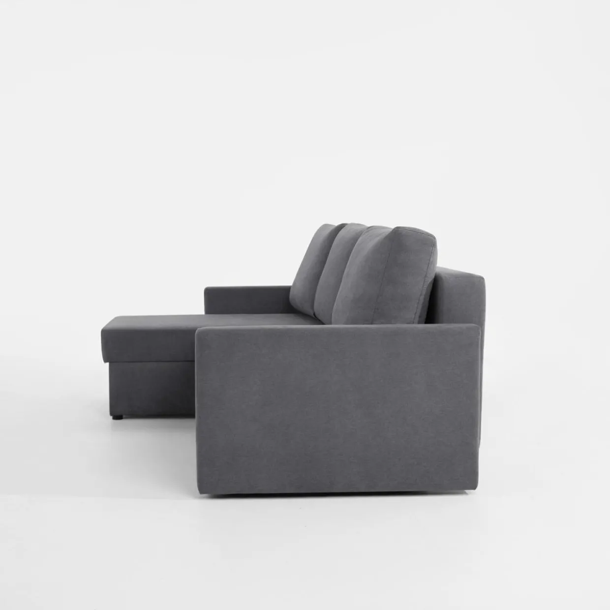 - 1 pojemnik znajduje się pod siedziskiem – to idealne miejsce na pościel, bo dostaniesz się do niej podczas rozkładania narożnika.