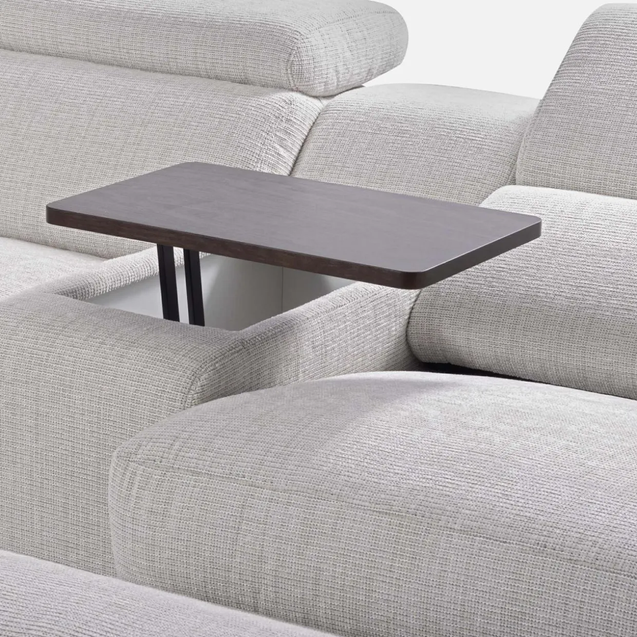 - Wystarczy podnieść blat, aby zyskać wygodne miejsce do przechowywania pilota, ładowarki czy ulubionej książki — zawsze tam, gdzie tego potrzebujesz.