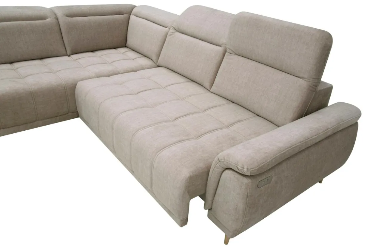 Narożnik CALVARO L ma elektrycznie regulowane siedzisko za pomocą przycisku.