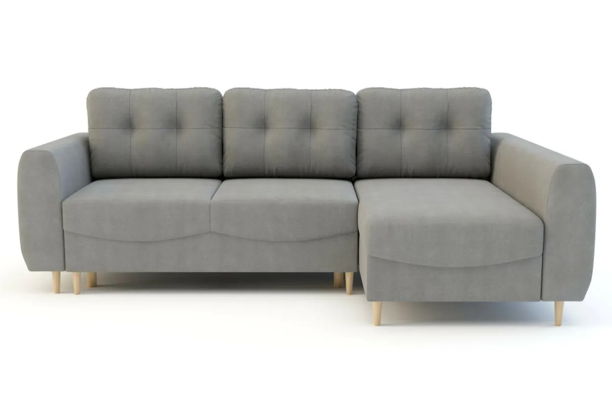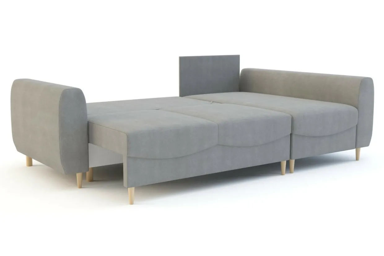 Aby przenocować gościa, wystarczy wysunąć siedzisko i złożyć oparcie. Z pojemnika, znajdującego się pod siedziskiem możesz korzystać w trakcie rozkładania narożnika.