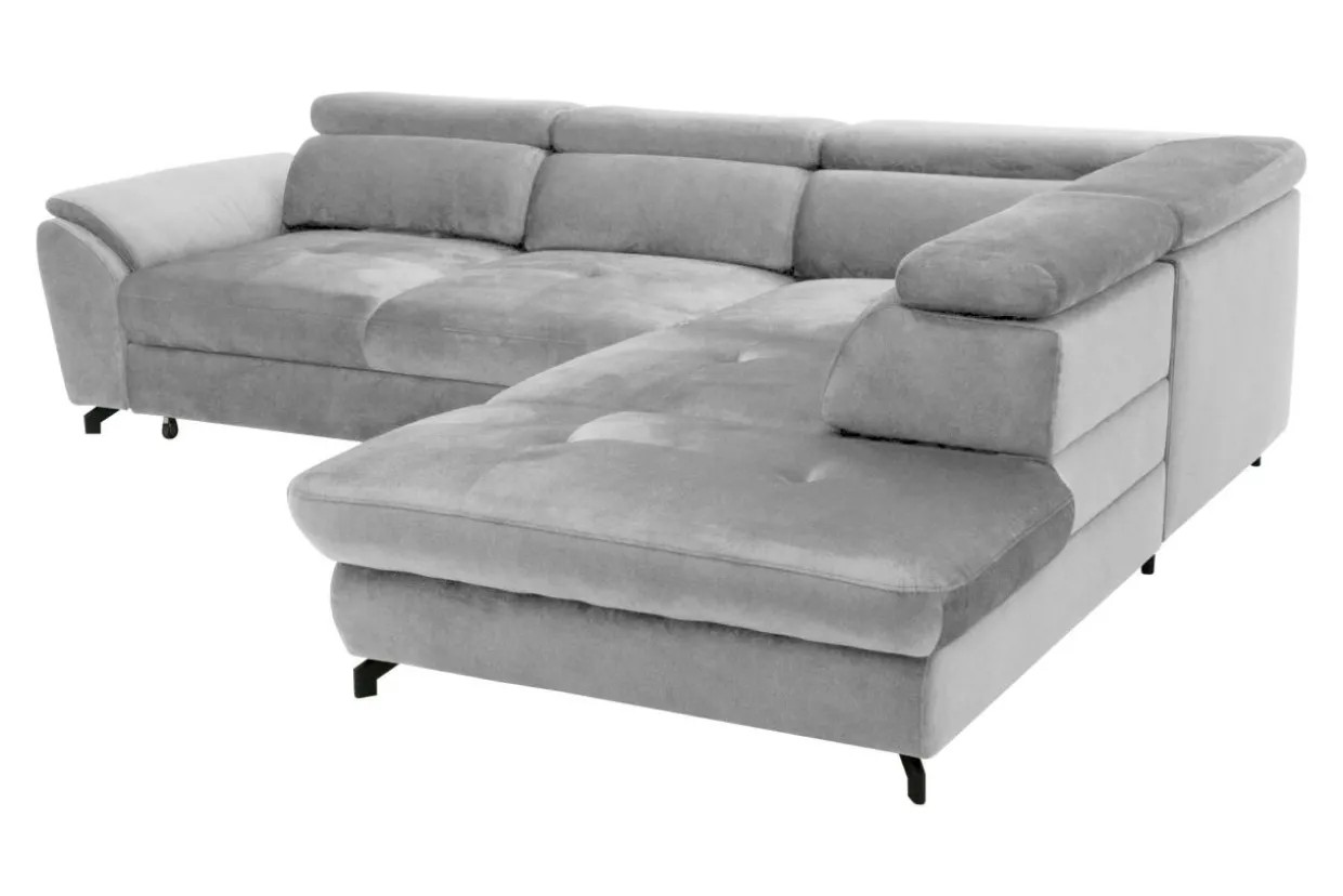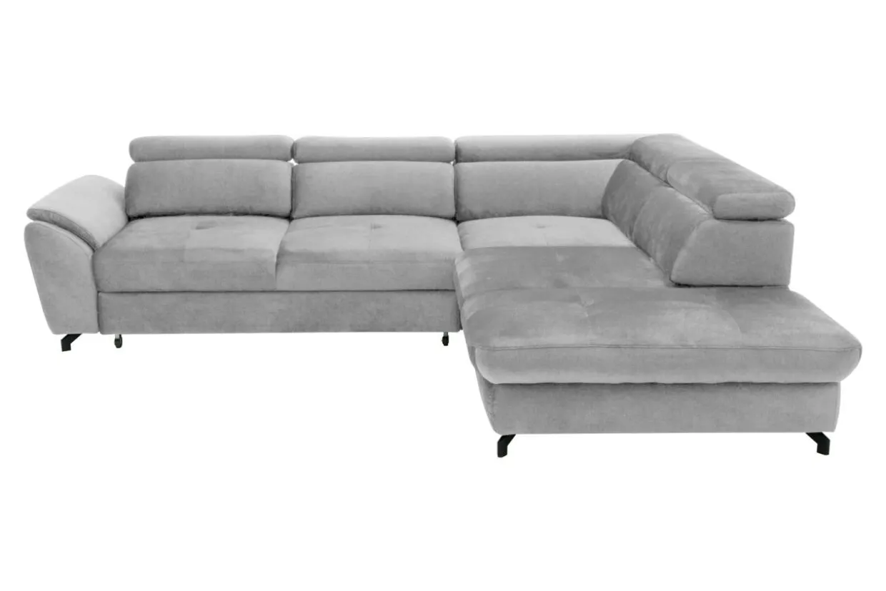 - Narożnik MAROLA ustawiono na eleganckich nóżkach wykonanych z metalu i malowanych na czarno.
