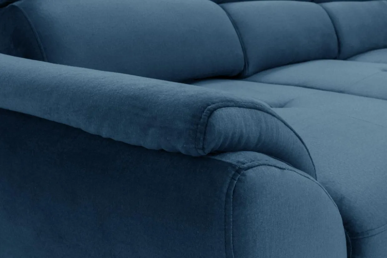Długa leżanka narożnika umożliwia korzystanie z niej w pozycji półleżącej.