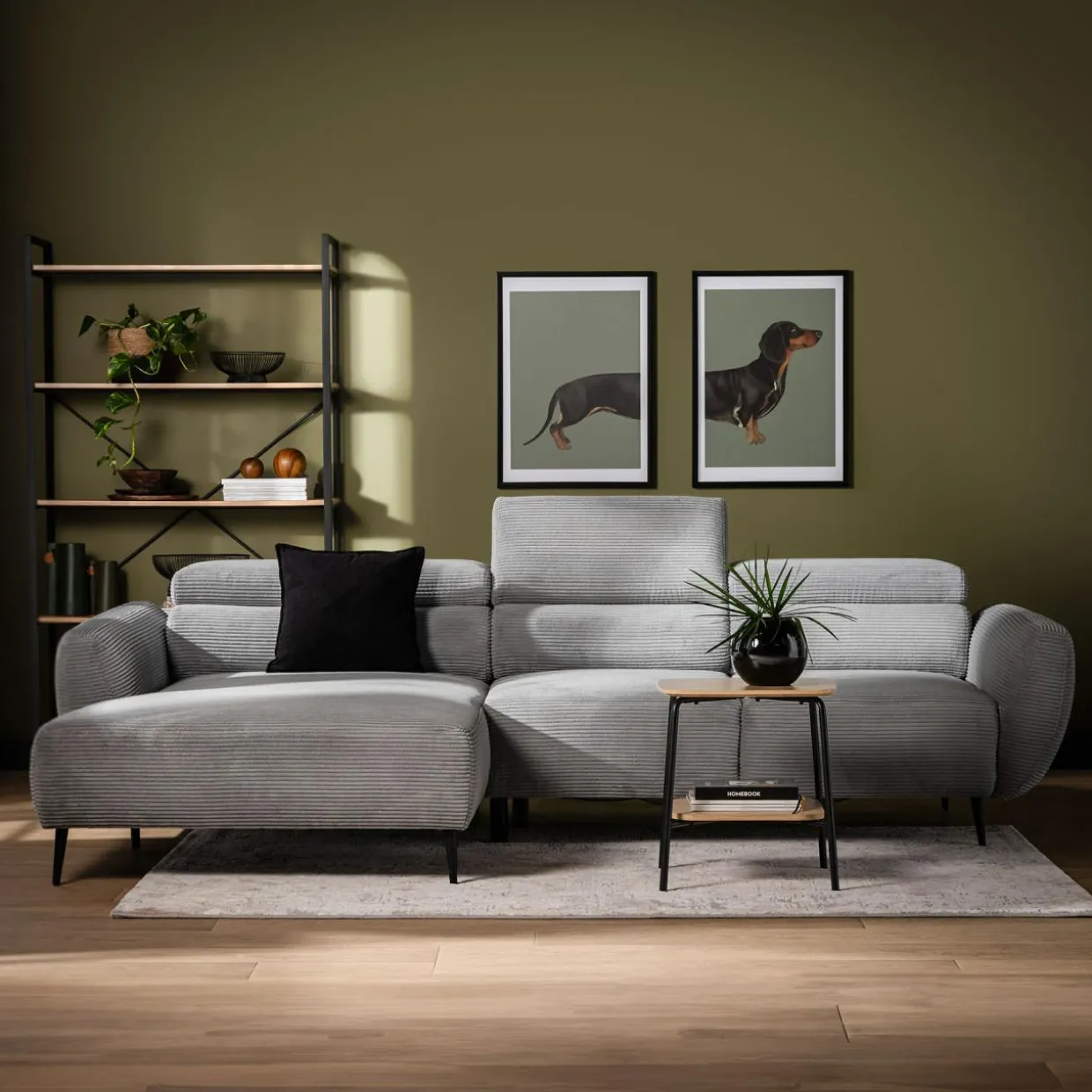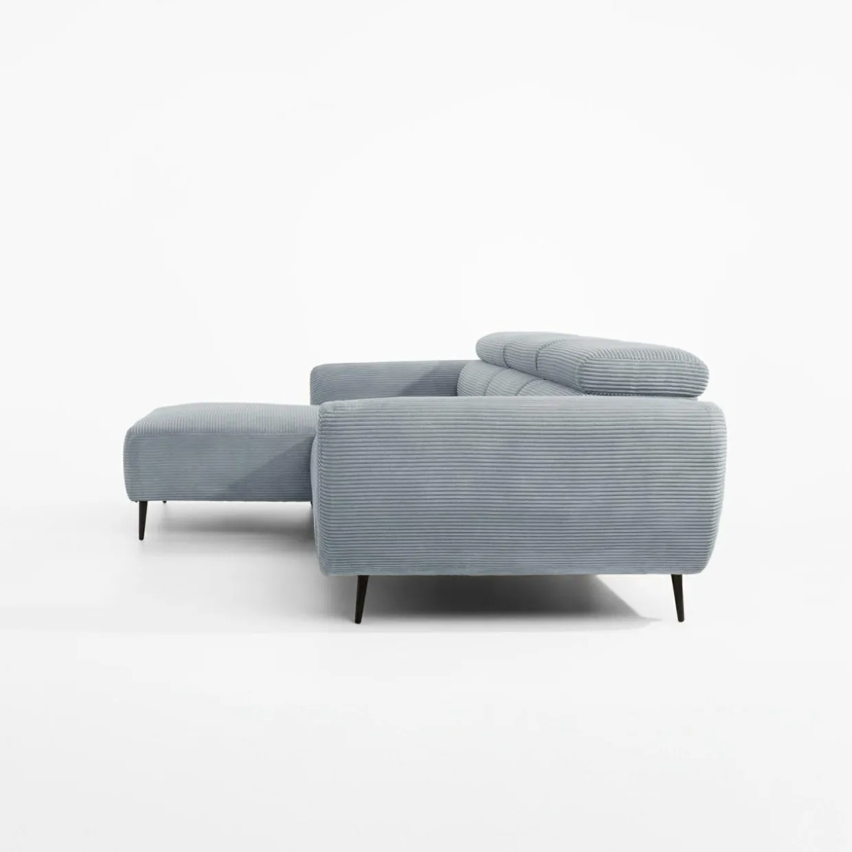 Narożnik ALISSON S z regulowanym elektrycznie siedziskiem stworzy komfortową przestrzeń do wspólnego wypoczywania przy ulubionym serialu. Przyjemny w dotyku sztruks stworzy przytulną aurę, która pozwoli Ci złapać oddech po zabieganym dniu.