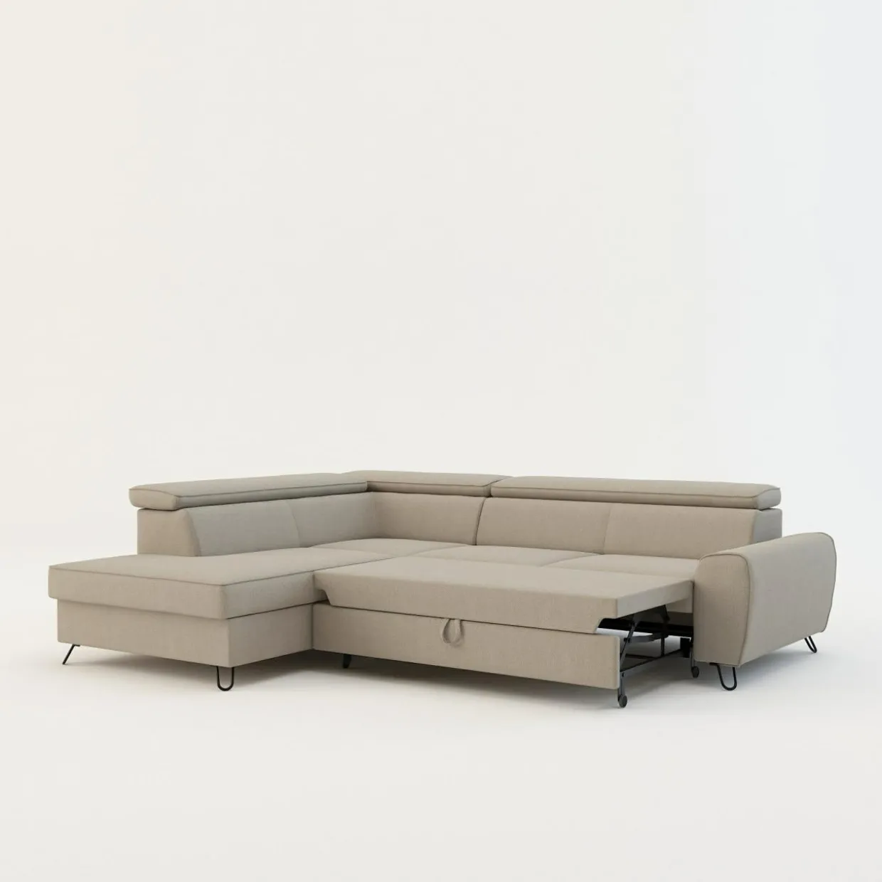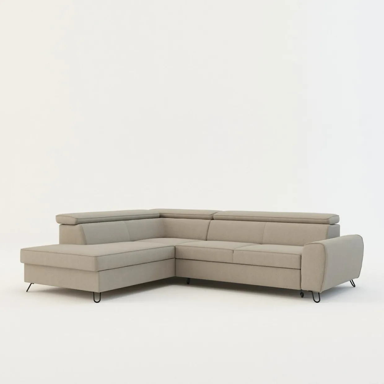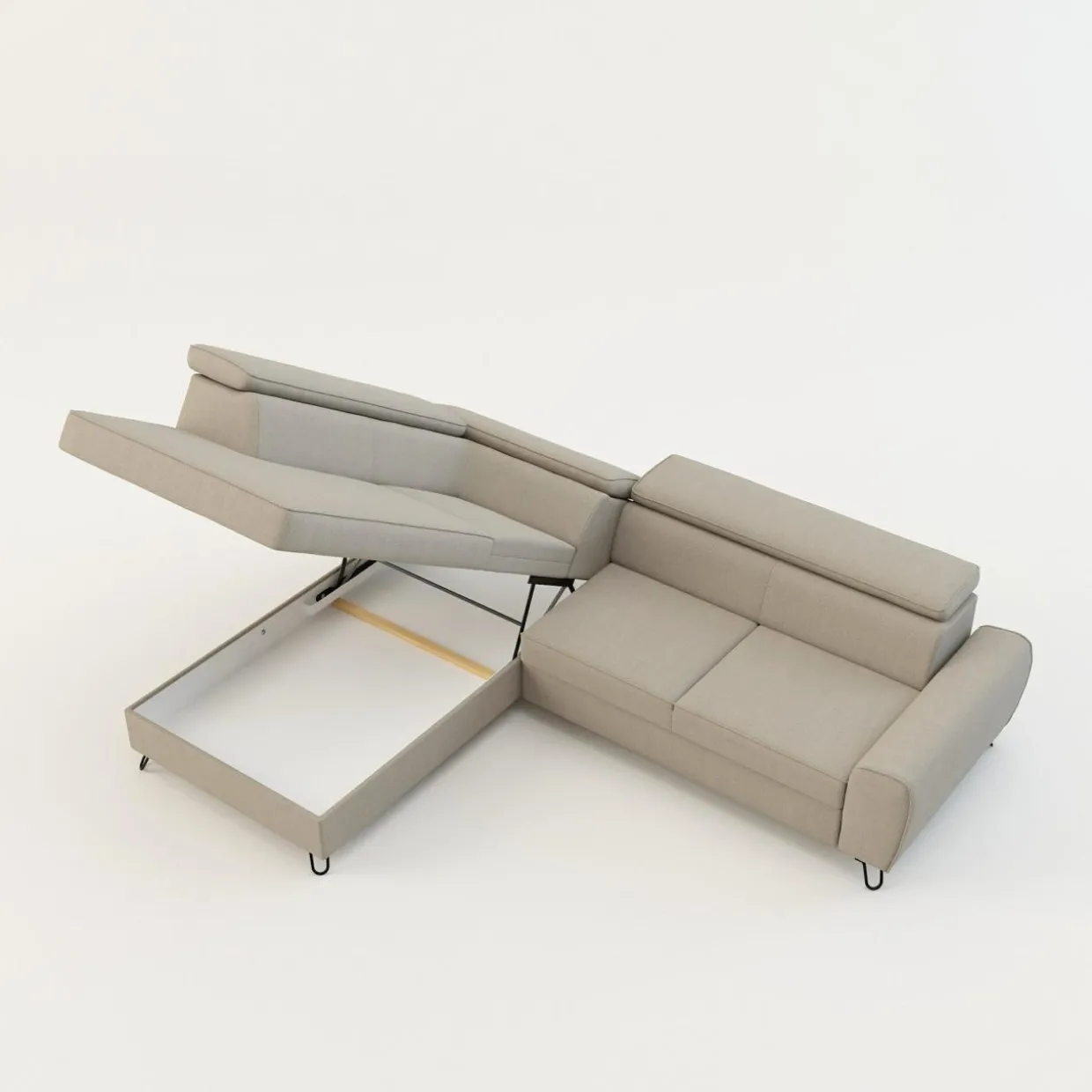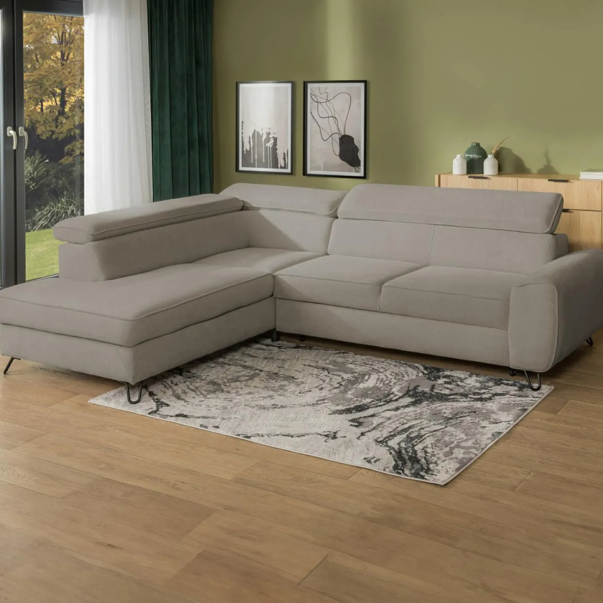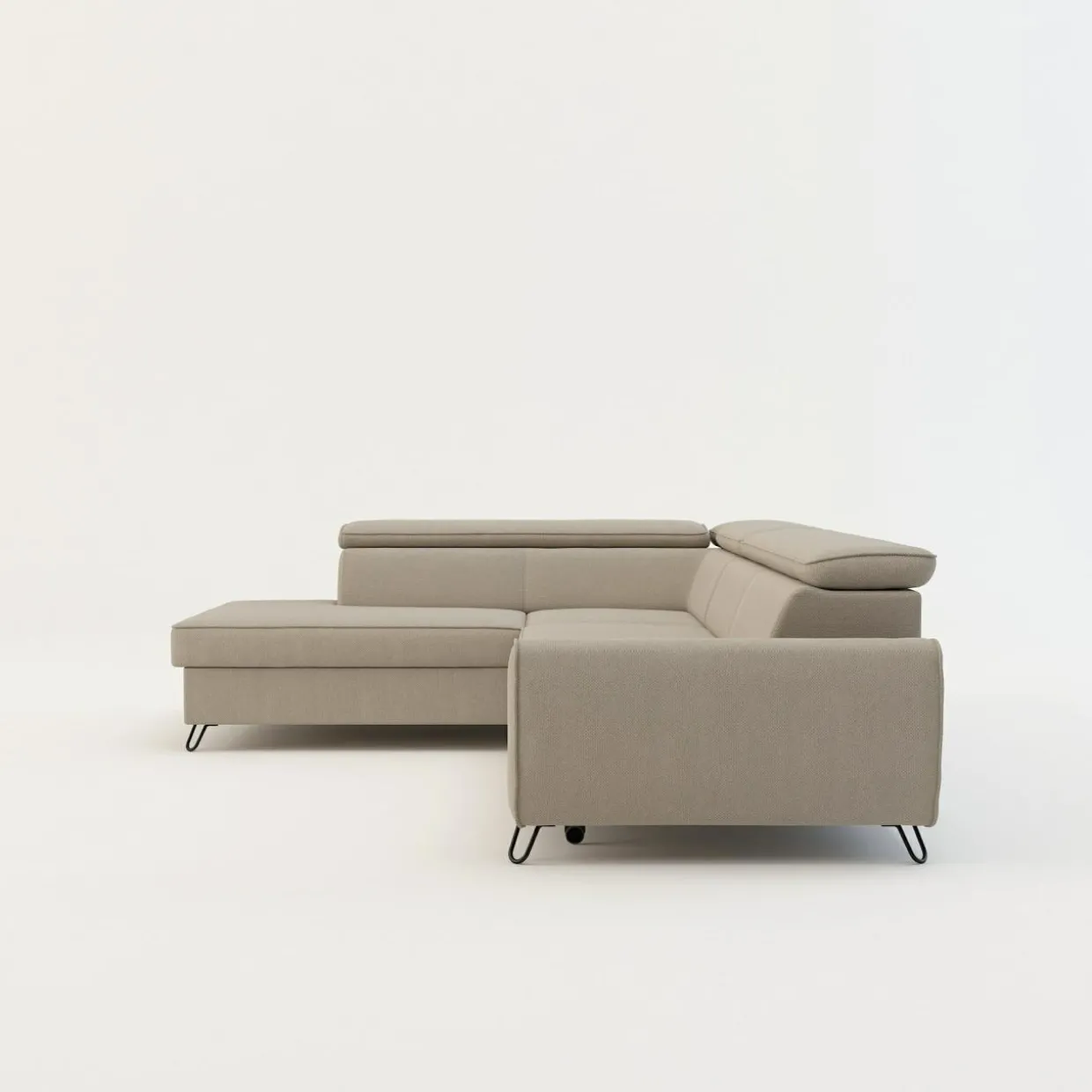 - Narożnik posiada 3 regulowane zagłówki na całej długości narożnika, dzięki czemu każdy z gości może usiąść równie komfortowo.
