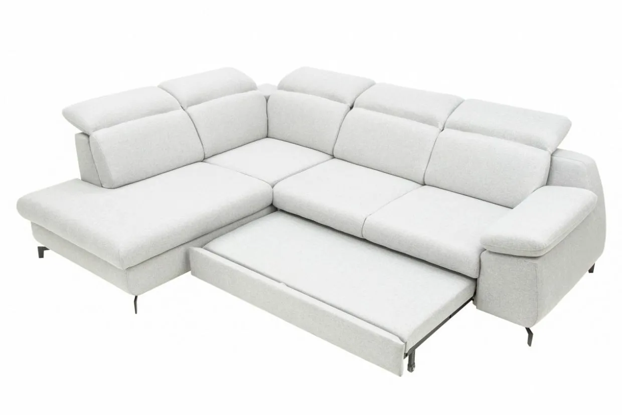 Narożnik można w prosty sposób rozłożyć za pomocą systemu typu delfin. Wysuń szufladę znajdującą się w krótszej części narożnika, a następnie pociągnij za specjalny uchwyt by wyjąć materac.