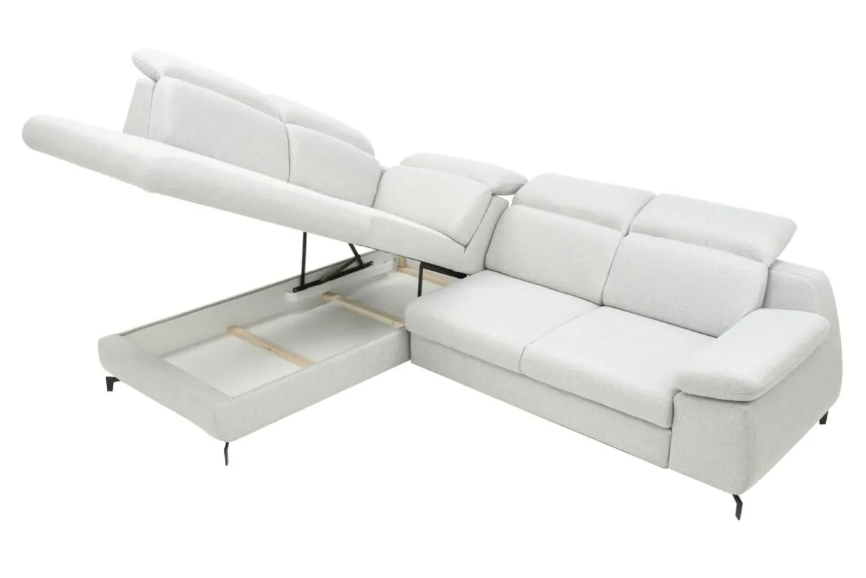 W bocznej części narożnika znajduje się pojemnik. Schowaj w nim pościel, koce lub inne tekstylia i zaoszczędź miejsce w szafie.