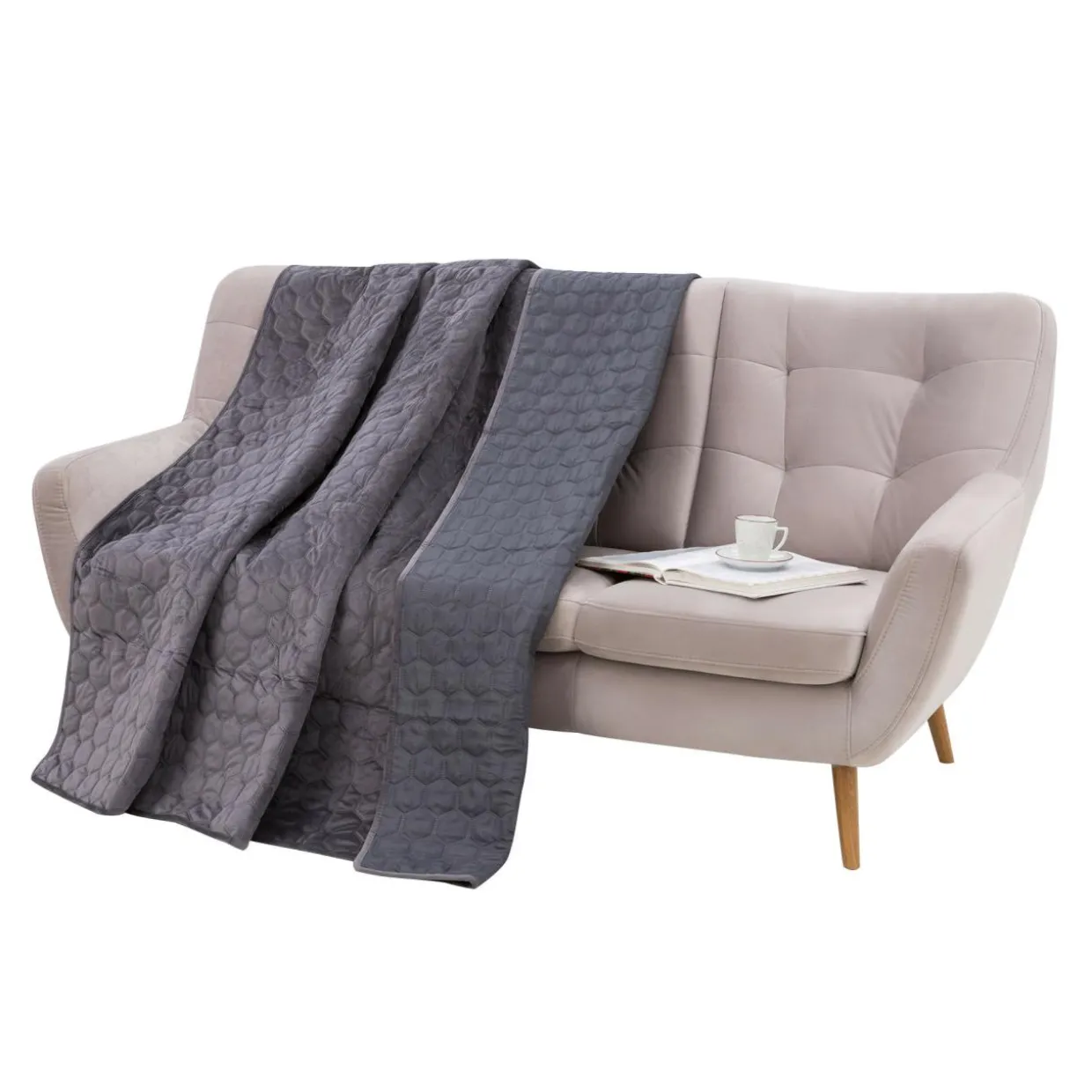 - Narzuta jest wykonana z delikatnych i miłych w dotyku tkanin;