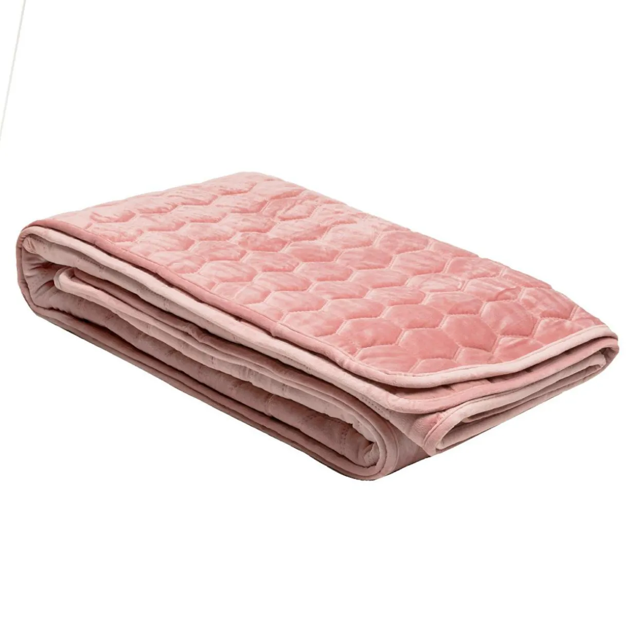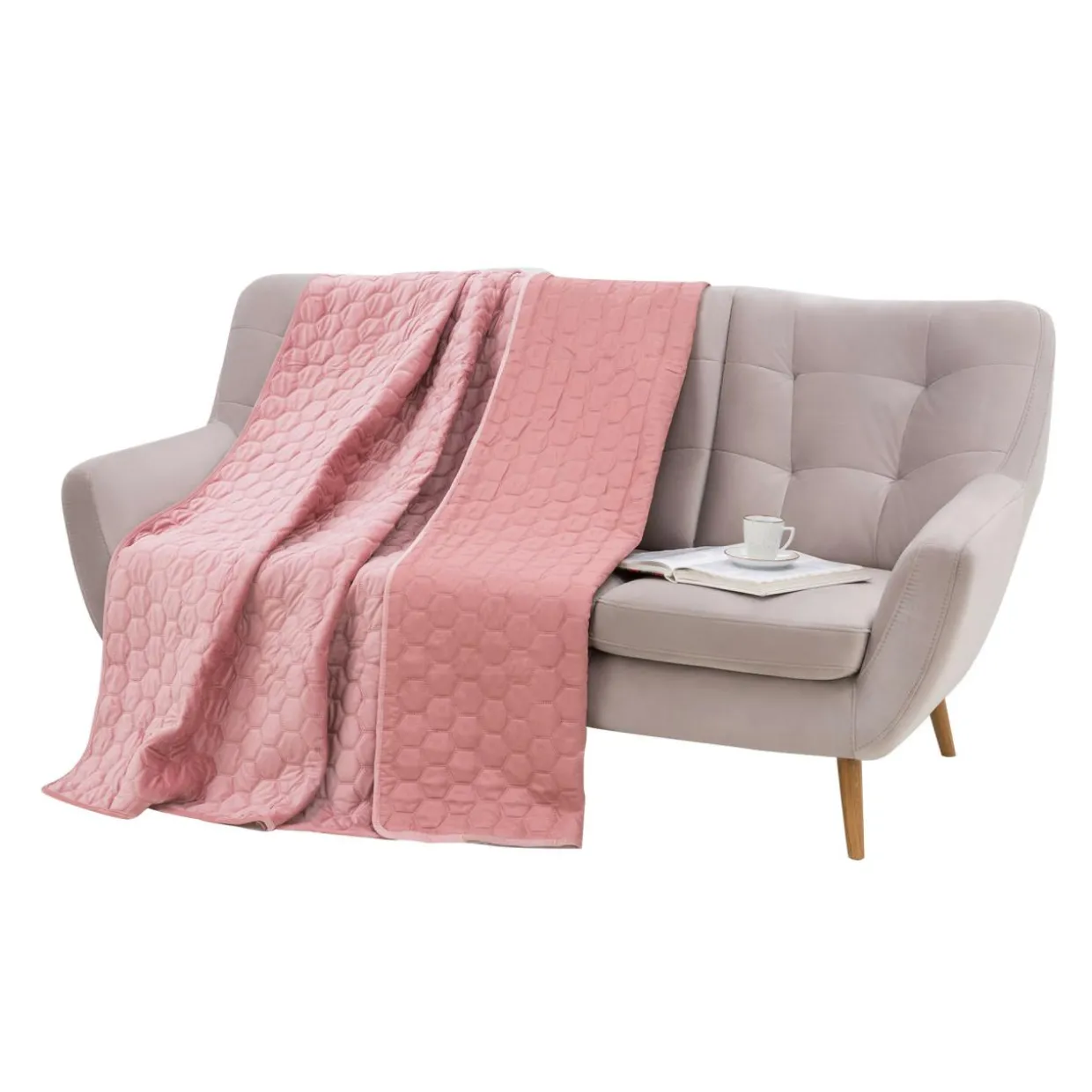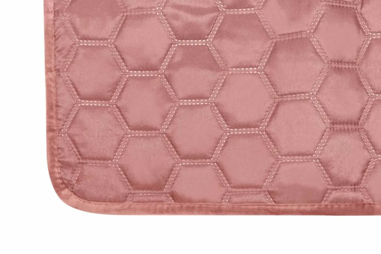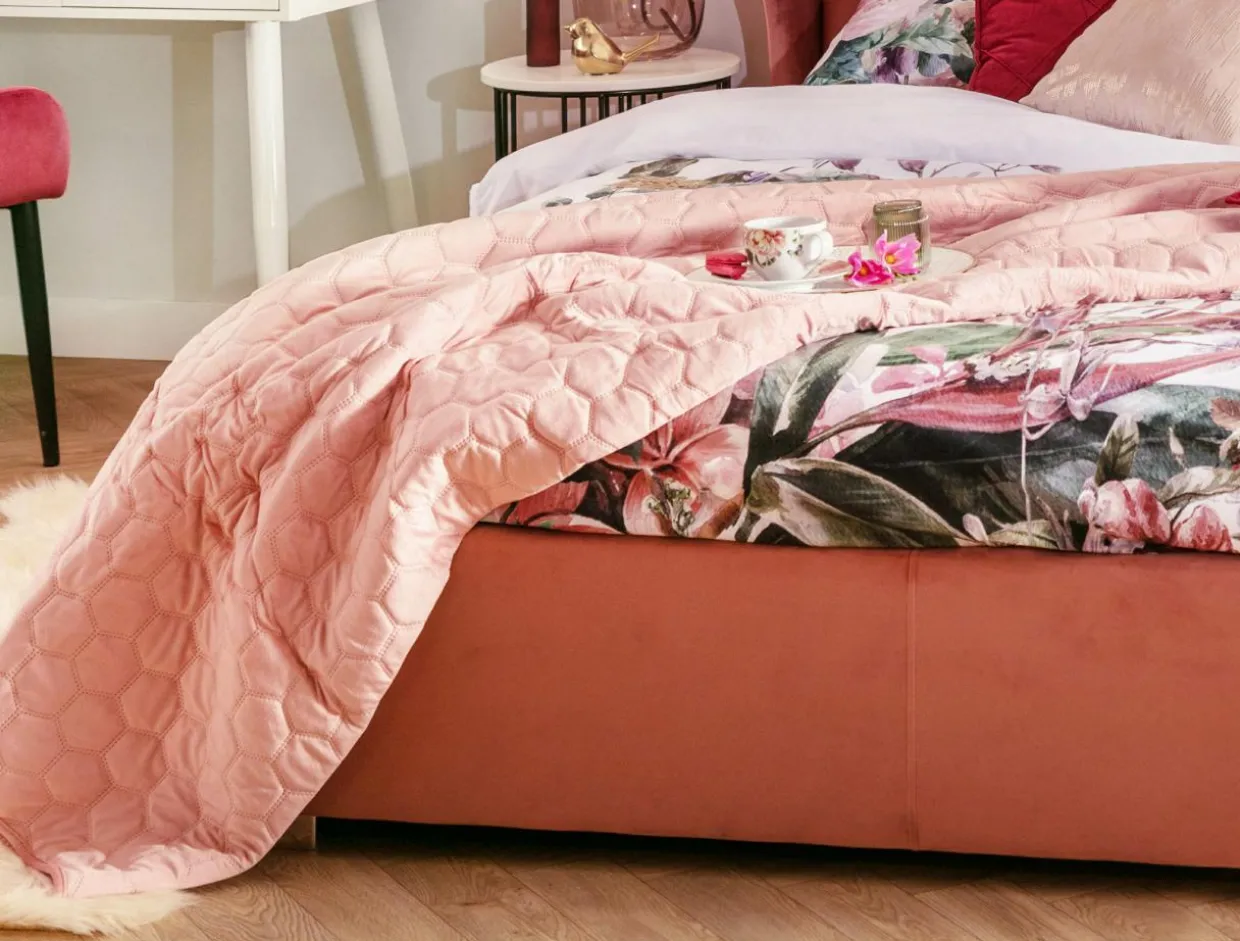 - Narzuta jest wykonana z delikatnych i miłych w dotyku tkanin;