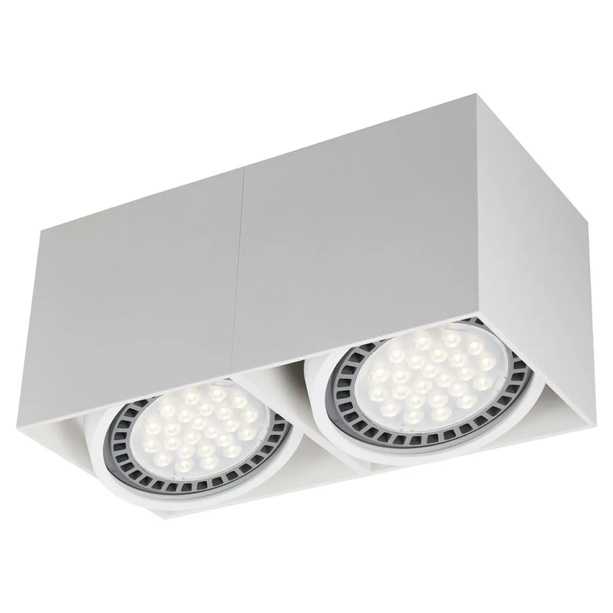 Uniwersalny biały kolor sprawia, że spot BOX idealnie pasuje do większości aranżacji i doskonale łączy się zarówno z jasną, jak i ciemniejszą kolorystyką ścian i mebli. Lampy z kolekcji BOX posiadają oprawę dla pojedynczej żarówki GU10 AR111 o mocy 15W.