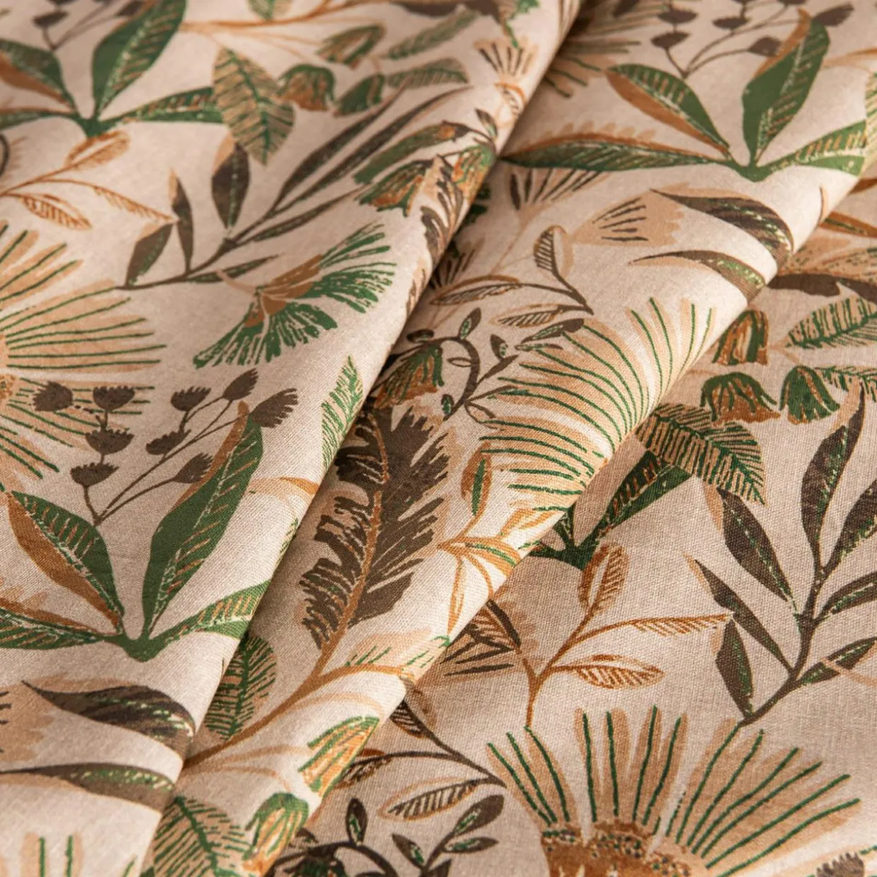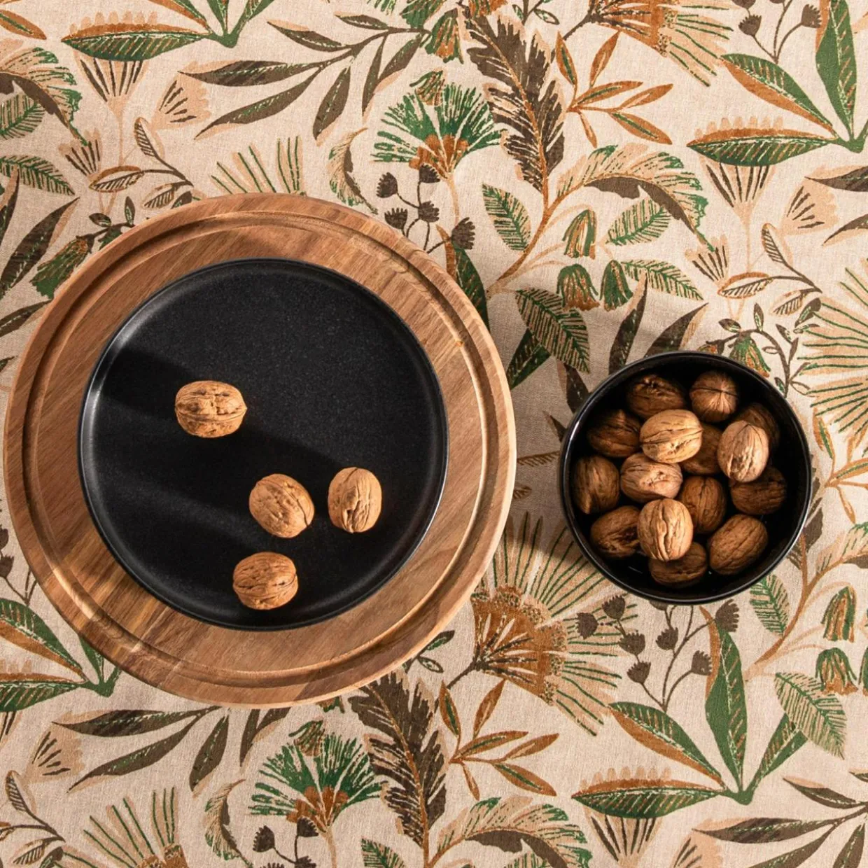 - Przyjemnie będzie spożywać codzienne posiłki w klimacie tropików. Spokojna kolorystyka ukoi Twoje zmysły. Botaniczny wzór utrzymany jest w kolorach ziemi. Występują tu tony zieleni, odcienie beżu i brązu.